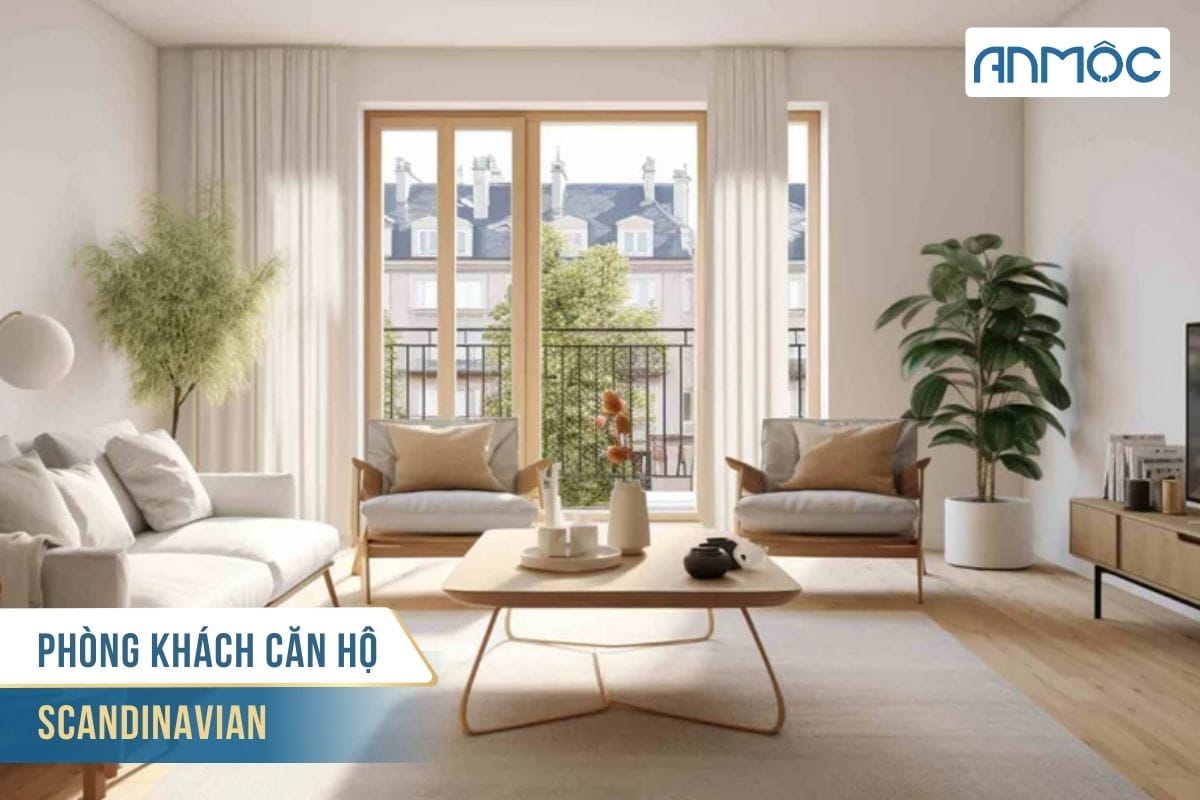 Scandinavian đề cao sự đơn giản, tinh tế và ấm áp. Nội thất phòng khách theo phong cách này sử dụng gam màu trắng chủ đạo, kết hợp với gỗ sáng màu, vải dệt thô và các vật dụng trang trí tối giản. Không gian luôn thoáng đãng, tràn ngập ánh sáng tự nhiên, mang lại cảm giác nhẹ nhàng và thư thái.