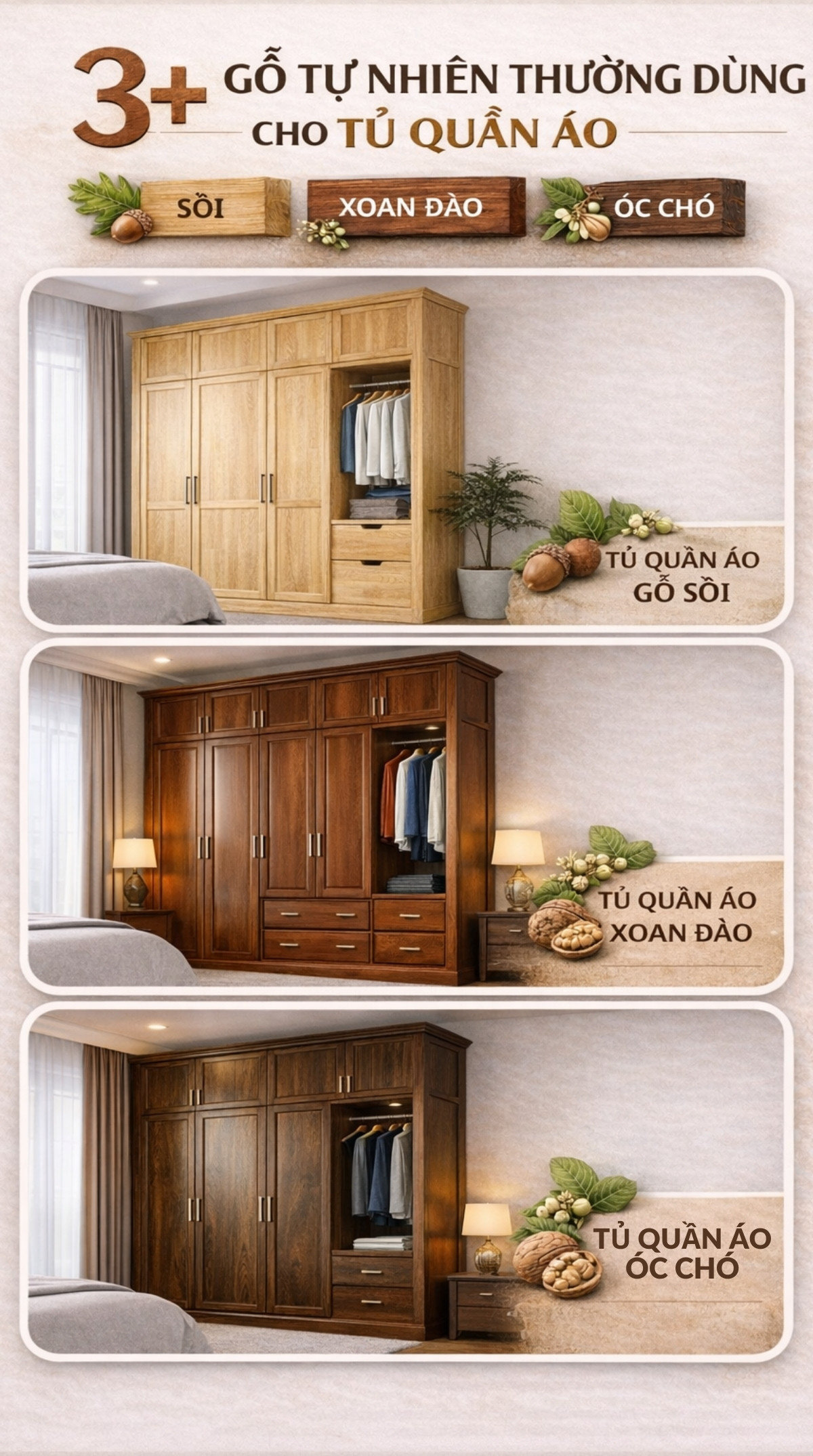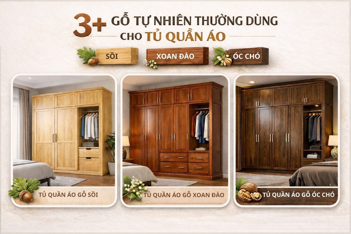 3+ gỗ tự nhiên thường dùng cho tủ quần áo