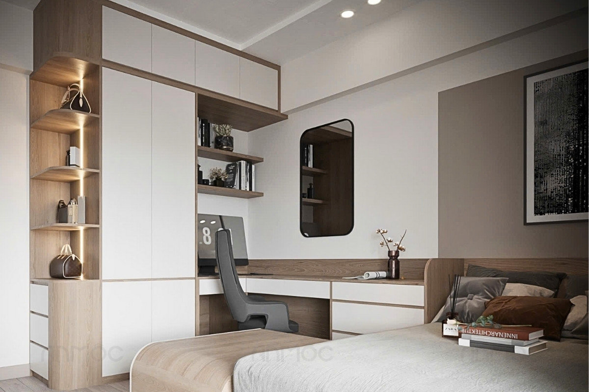 Chung cư thường có diện tích vừa – nhỏ, không gian kín. Gỗ công nghiệp phủ Melamine/Laminate là lựa chọn phù hợp nhờ trọng lượng nhẹ, chống ẩm tốt, giá hợp lý và dễ phối phong cách nội thất hiện đại.