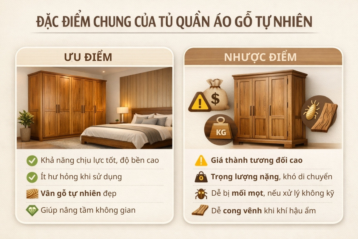 Đặc điểm chung của tủ quần áo gỗ tự nhiên