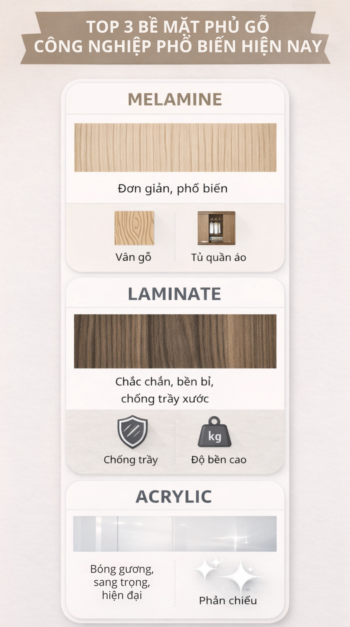 Top 3 bề mặt phủ gỗ công nghiệp phổ biến hiện nay