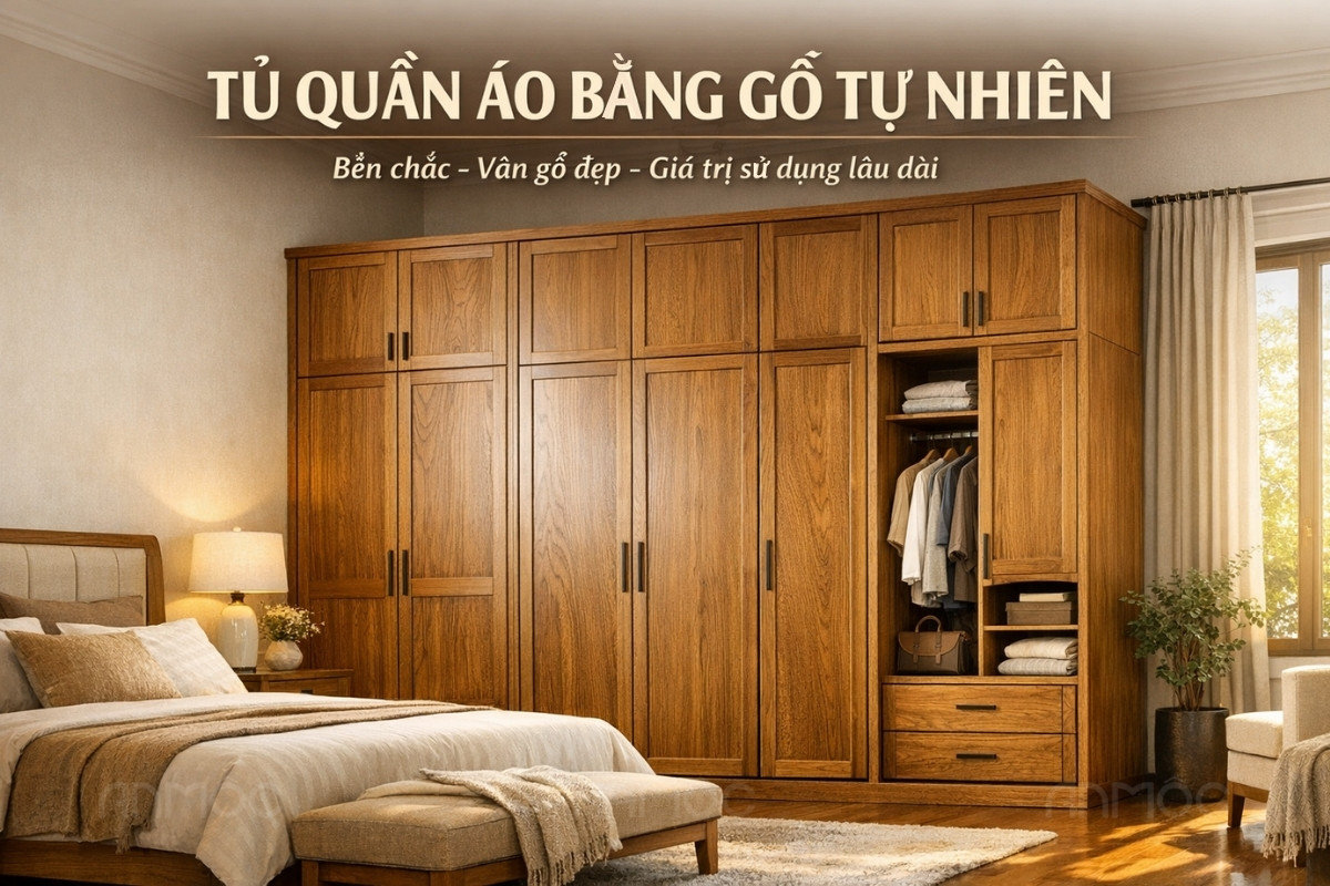 Tủ quần áo gỗ tự nhiên được ưa chuộng nhờ độ bền cao và vẻ đẹp tinh tế theo thời gian. Dưới đây là 3 loại gỗ tự nhiên phổ biến nhất hiện nay:
