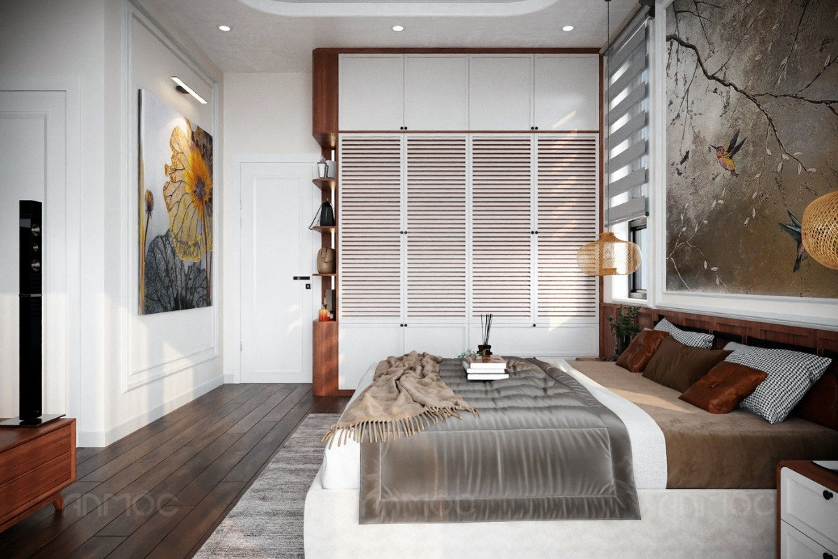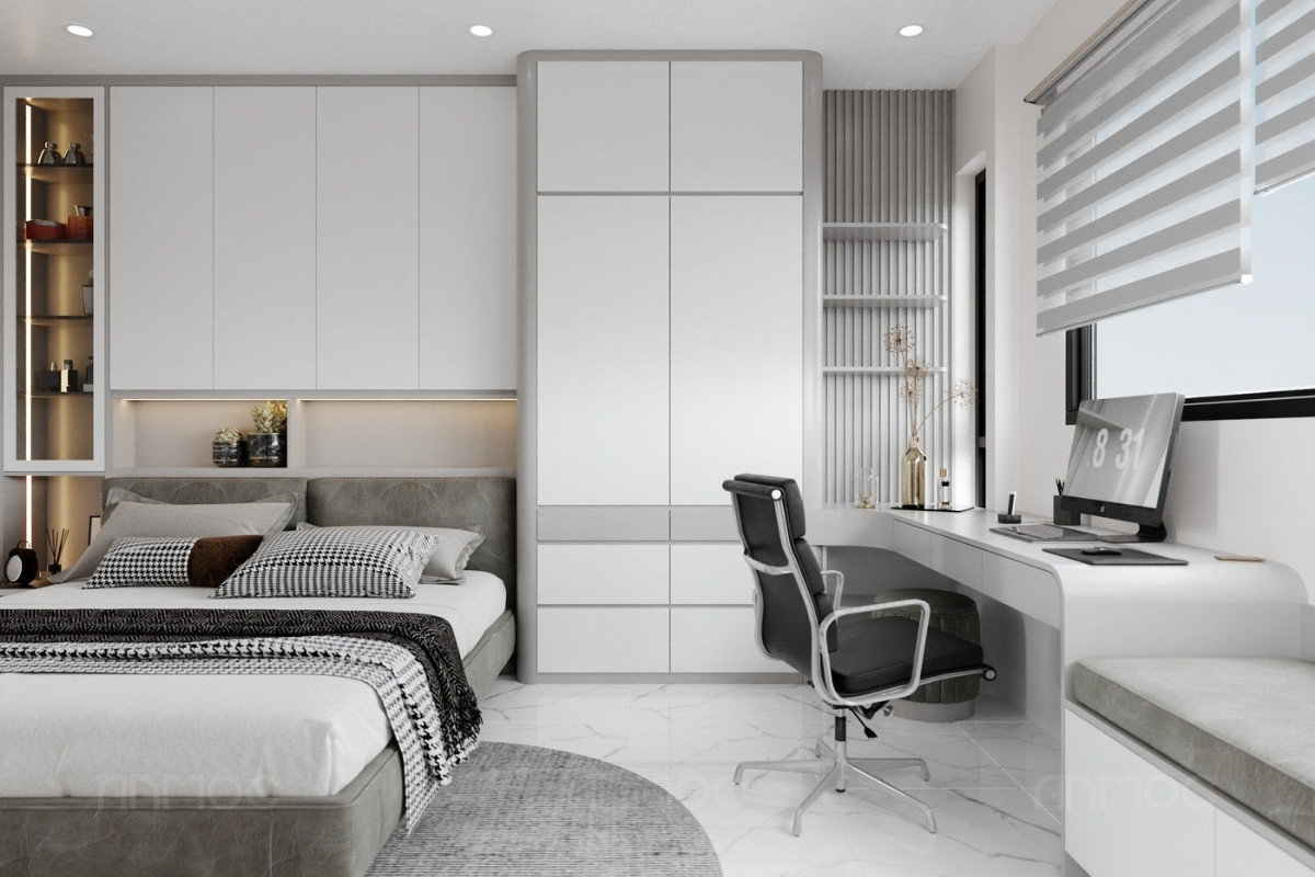 Với phòng ngủ hiện đại, tủ quần áo làm từ gỗ công nghiệp MDF rất được ưa chuộng. Chất liệu này có màu sắc đa dạng, bề mặt phẳng mịn, dễ phối với nội thất và mang lại cảm giác gọn gàng, tinh tế cho không gian.