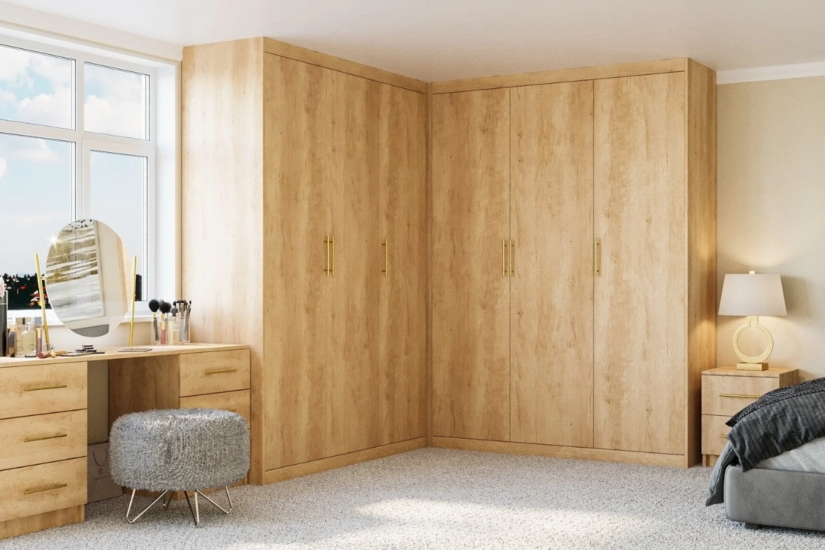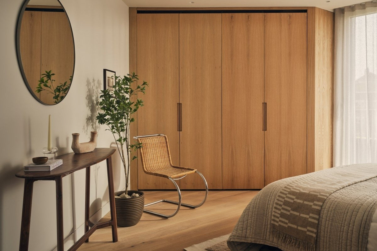 Tủ quần áo gỗ sồi tự nhiên, vân gỗ rõ nét, thiết kế hài hòa cho phòng ngủ
