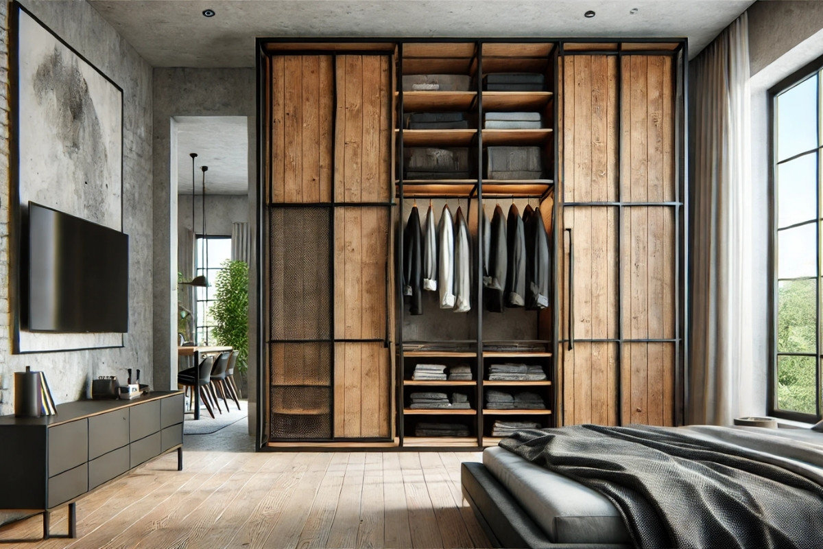 Tủ quần áo khung sắt + gỗ là kiểu tủ kết hợp khung kim loại chắc chắn với bề mặt gỗ, mang lại độ bền cao và phù hợp với nhiều không gian sống.