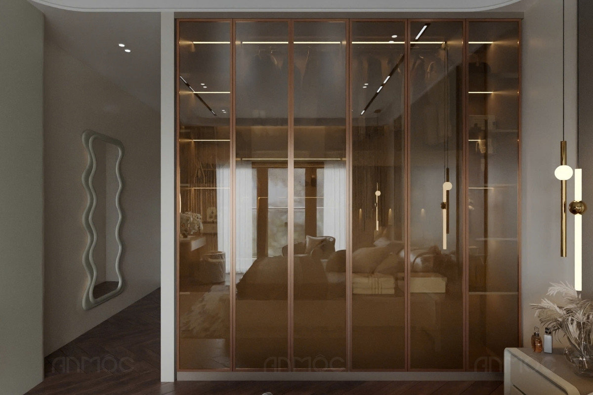 Acrylic là bề mặt tủ với đặc trưng bóng gương. Bề mặt này dễ lau chùi, giúp không gian phòng ngủ trông sáng và rộng hơn. Tuy nhiên, Acrylic có giá thành cao và dễ lộ vết xước, phù hợp cho những căn hộ hiện đại, nhà phố hoặc biệt thự, nơi tủ quần áo vừa là vật dụng, vừa là điểm nhấn thẩm mỹ.