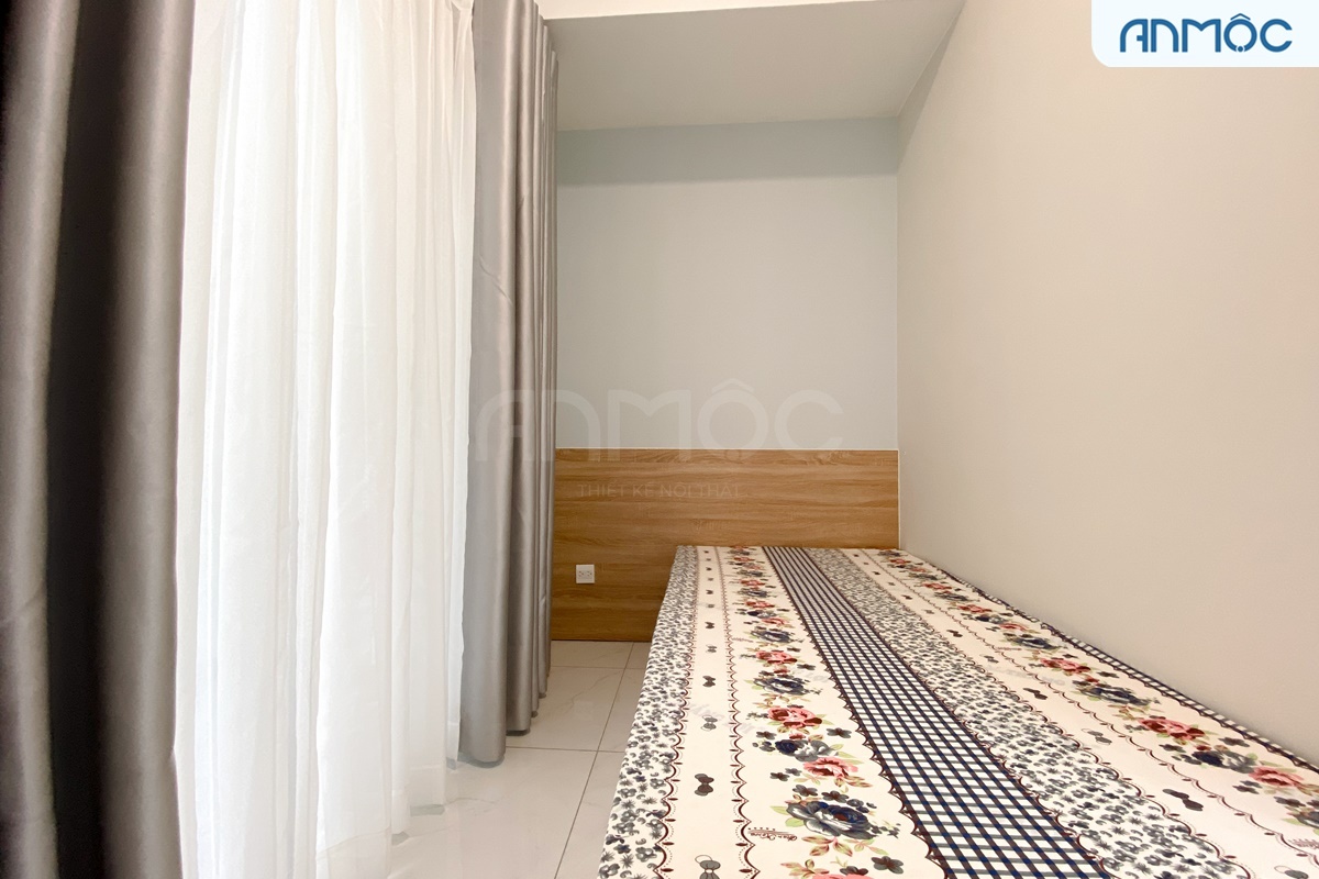 Giường ngủ được thiết kế đơn giản nhưng chắc chắn, mang lại sự thoải mái và hỗ trợ tốt cho giấc ngủ. Đặc biệt, thiết kế tích hợp bục giường giúp tăng cường không gian lưu trữ cho căn phòng thêm gọn gàng, rộng rãi. Vách đầu giường ốp gỗ vừa đẹp mắt vừa an toàn khi sử dụng.