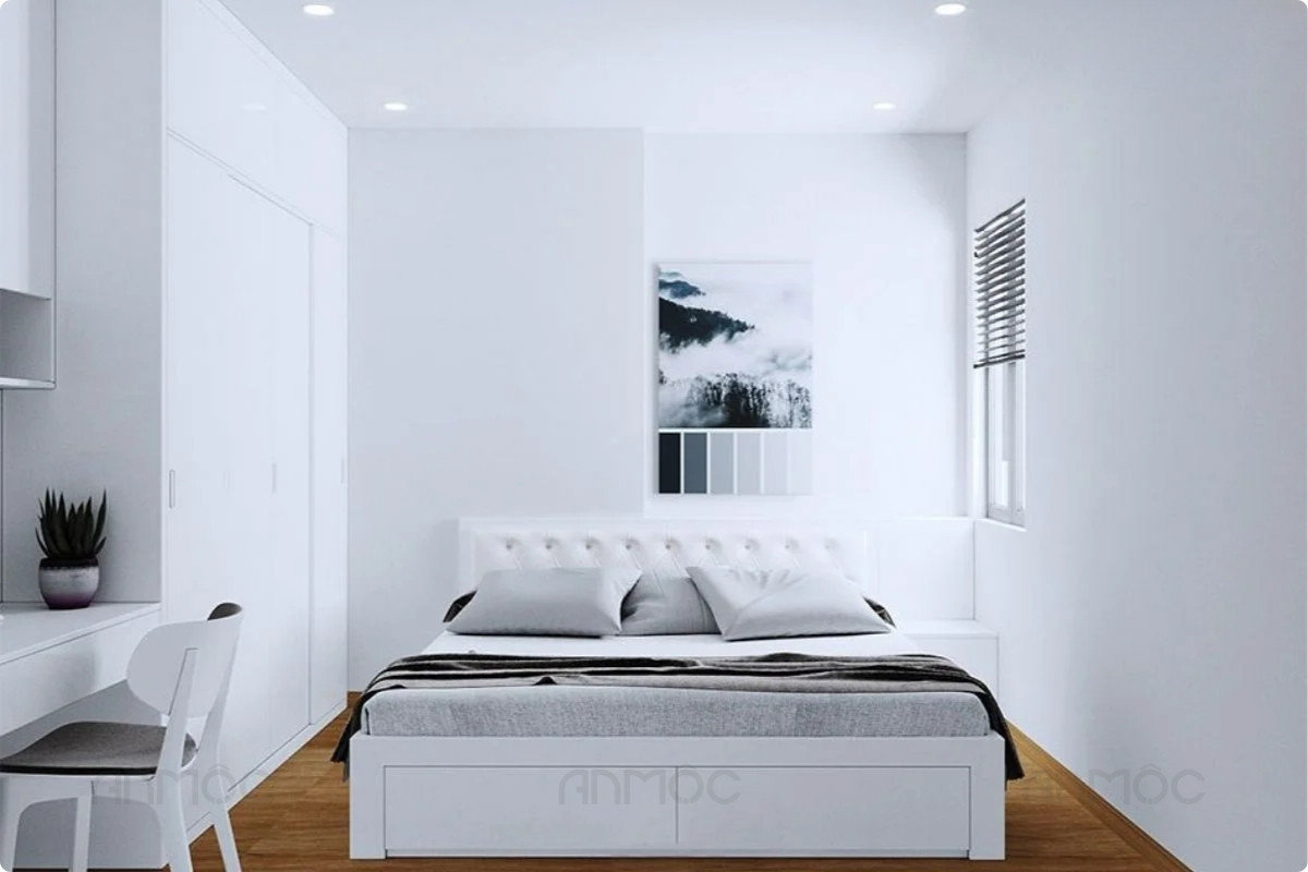 Nếu bạn yêu sự nhẹ nhàng, tinh tế thì phong cách Hàn Quốc là lựa chọn phù hợp. Với tinh thần tối giản nhưng vẫn giữ được sự ấm cúng, phong cách này thường sử dụng tông trắng, be, pastel kết hợp nội thất thấp, giúp phòng ngủ trông rộng rãi và dễ chịu hơn.