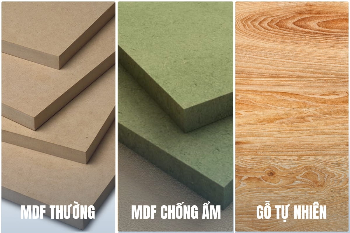 - Chất liệu sử dụng (MDF thường, MDF chống ẩm, gỗ tự nhiên…)