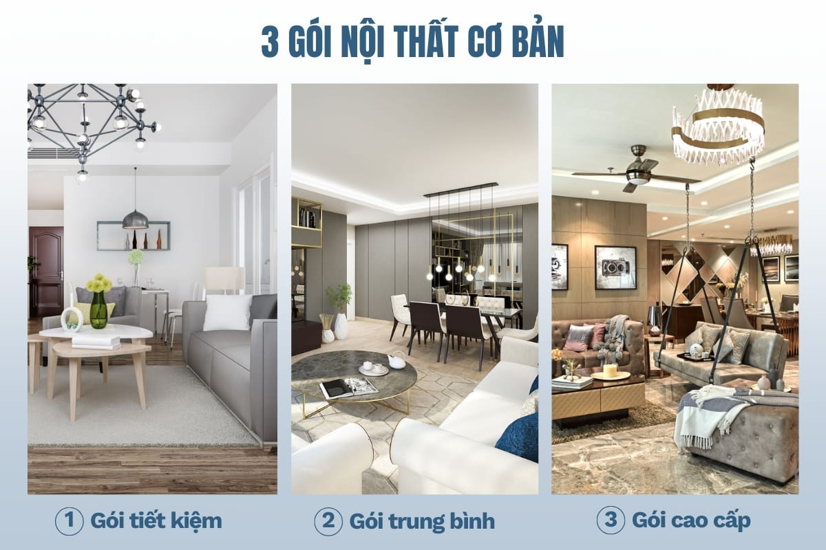 - Cao cấp: Dành cho những ai mong muốn sở hữu không gian sống sang trọng, đẳng cấp. Gói đầu tư này thường sử dụng vật liệu cao cấp, thiết kế tỉ mỉ và tinh xảo, hướng đến sự đẳng cấp và giá trị lâu dài.