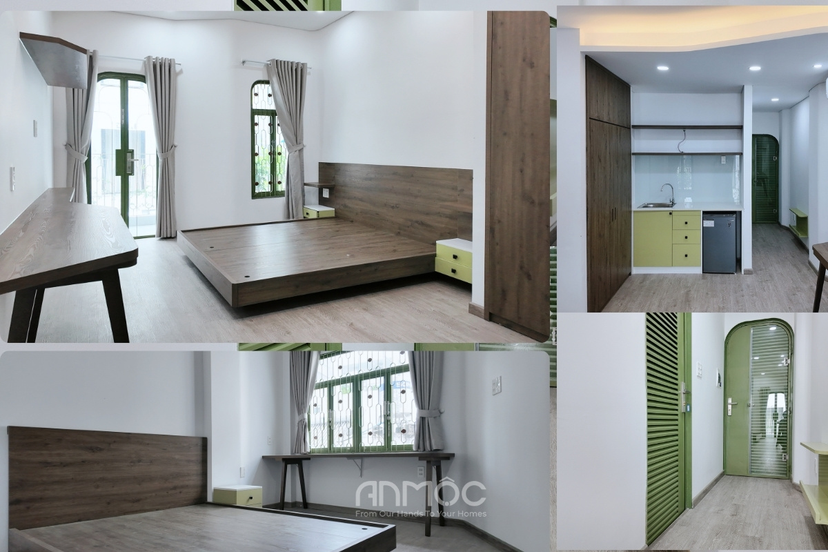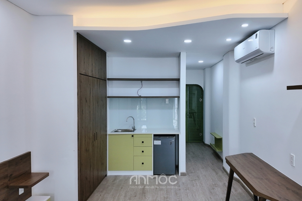 Dự án Hoàn Thiện Thi Công Nội Thất Nhà Phố Quận 1 được An Mộc thực hiện theo mô hình phòng mini cho thuê, tối ưu không gian nhưng vẫn đảm bảo đầy đủ tiện ích cho người sử dụng. Mỗi phòng đều được bố trí hợp lý với khu vực bếp, phòng ngủ và lưu trữ gọn gàng, đáp ứng nhu cầu sinh hoạt cơ bản trong một diện tích vừa phải.