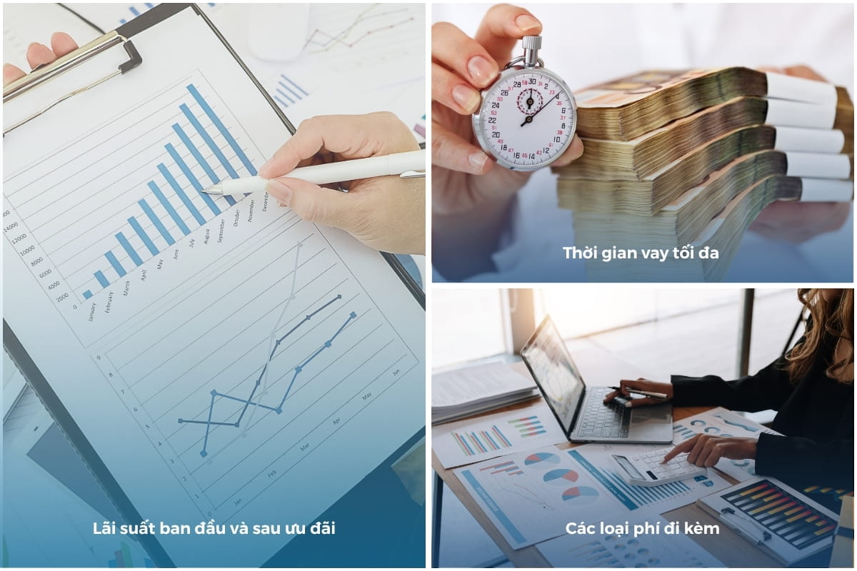 – So sánh kỹ các gói vay: Lãi suất ưu đãi, phí phạt trả trước, thời hạn vay.