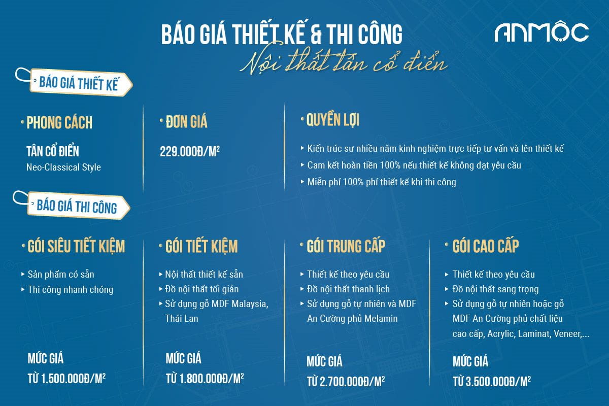 Với sự chú trọng vào các chi tiết tinh xảo, màu sắc hài hòa và sự cân đối trong bố cục, tân cổ điển không chỉ tạo ra không gian sống sang trọng mà còn toát lên vẻ thanh lịch, tinh tế. Để hiểu hơn về phong cách thiết kế này, hãy cùng An Mộc đi tìm hiểu bài viết dưới đây nhé!