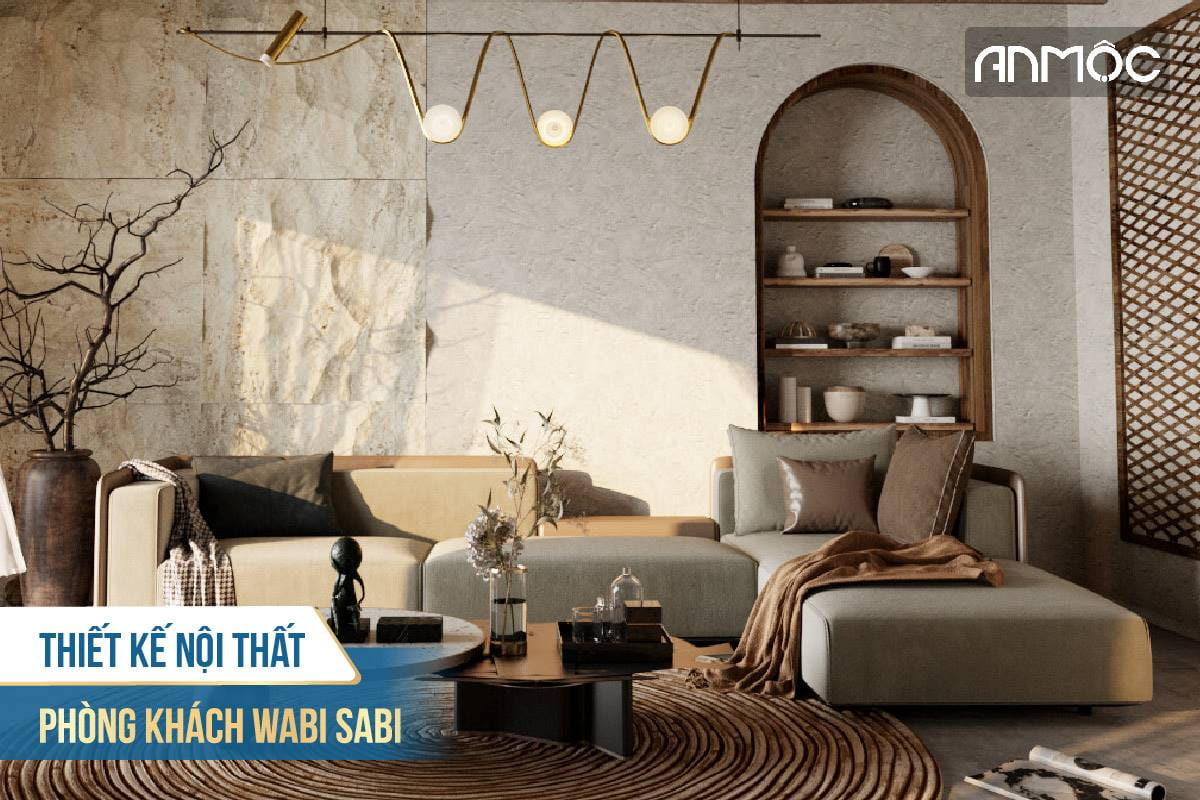 Phòng khách chính là khu vực sinh hoạt chung của gia đình nên thường rất được chú trọng trong thiết kế. Phòng khách Wabi Sabi tập trung vào sự giản dị và tự nhiên với các vật liệu như gỗ, đá, đất sét, giữ nguyên vân thô hoặc dấu vết thời gian. Các tông màu được sử dụng là các màu sắc trung tính như nâu đất, xám, be được ưu tiên để tạo cảm giác hài hòa.