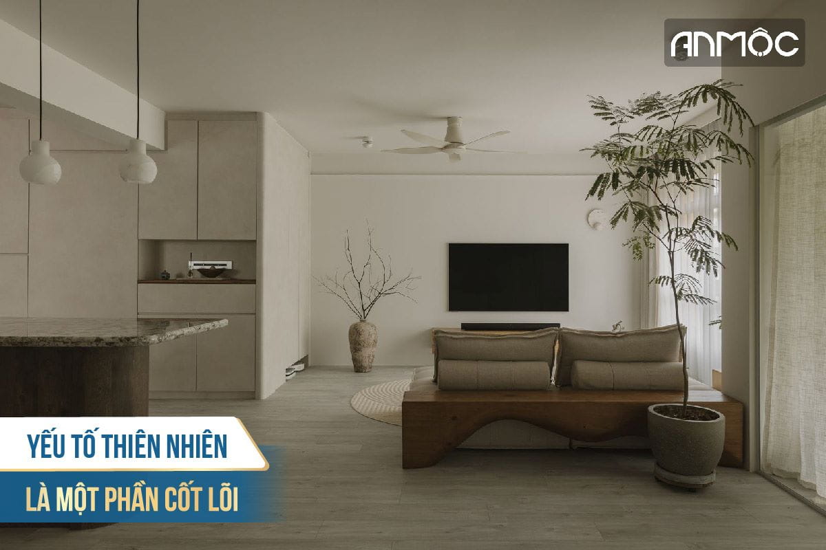 Wabi Sabi lấy cảm hứng từ thiên nhiên, với việc sử dụng vật liệu như gỗ, đá, đất sét và các yếu tố tự nhiên khác. Vì vậy việc bổ sung cây xanh hoặc các vật liệu thô mộc vào không gian là rất cần thiết. Điều này giúp tạo nên cảm giác gần gũi và có sự kết nối với môi trường xung quanh.