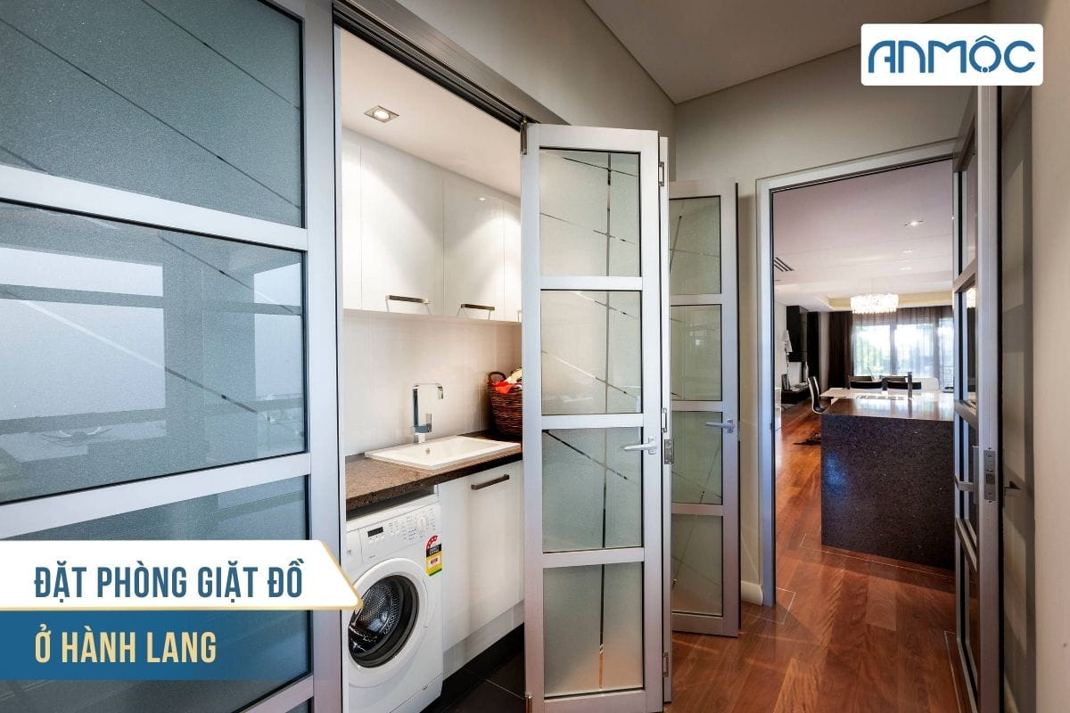 Đặt phòng giặt đồ ở hành lang là một lựa chọn lý tưởng cho những ngôi nhà có diện tích hạn chế. Vị trí này giúp tiết kiệm không gian sinh hoạt trong nhà, đồng thời không làm ảnh hưởng đến thẩm mỹ chung của ngôi nhà. Để đảm bảo hiệu quả sử dụng, hãy chú ý đến việc lắp đặt hệ thống cấp thoát nước hợp lý và tạo không gian thông thoáng để phòng giặt luôn khô ráo và sạch sẽ.