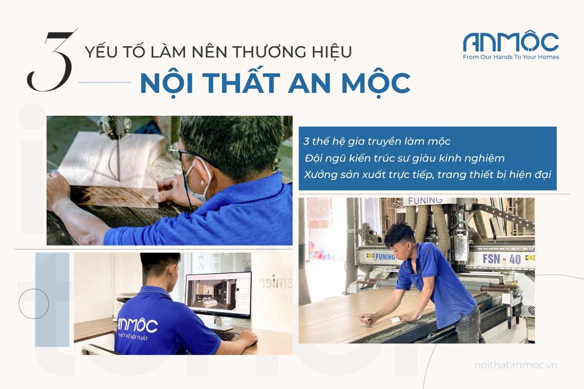 Với truyền thống 3 thế hệ làm mộc, đội ngũ kiến trúc sư chuyên nghiệp, giàu sáng tạo, giàu kinh nghiệm, và xưởng sản xuất trực tiếp hiện đại, nội thất An Mộc sẽ mang đến những giải pháp hoàn hảo cho căn biệt thự của bạn.
