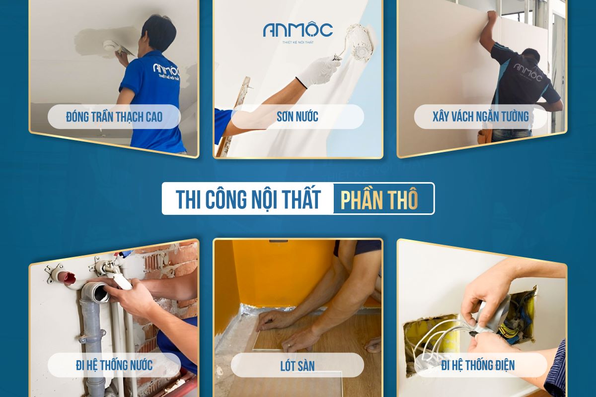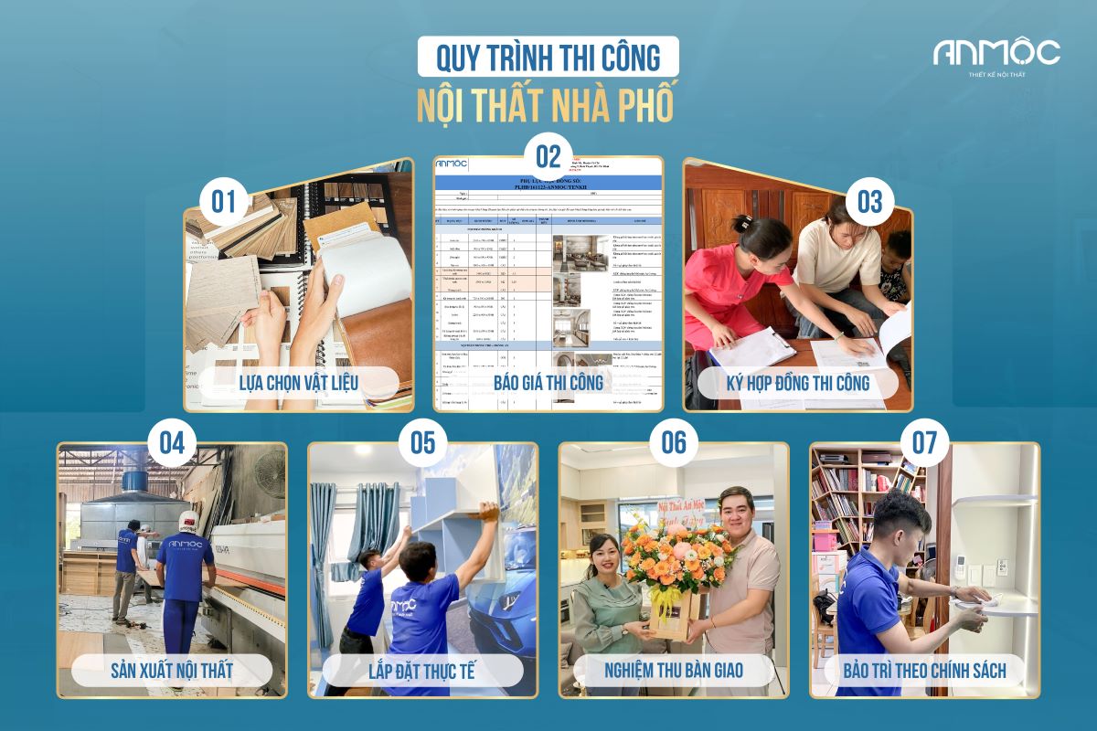 Quy trình thi công nội thất nhà phố tại nội thất An Mộc bao gồm những bước sau:
