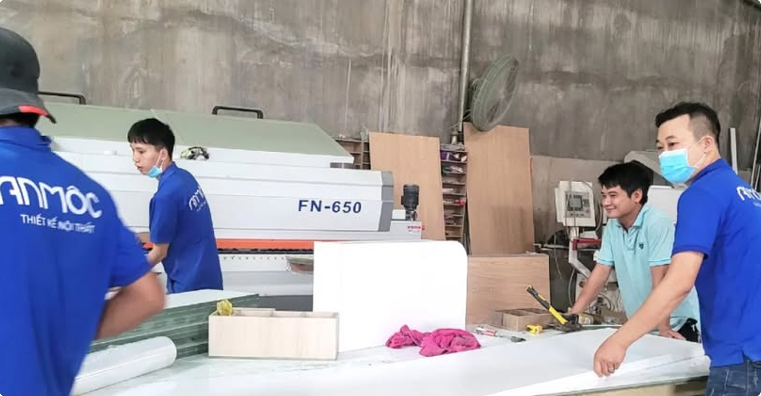 Đặc biệt, An Mộc sở hữu một xưởng sản xuất quy mô, hiện đại được trang bị các thiết bị, máy móc tiên tiến và quy trình làm việc khép kín chuyên nghiệp, giúp tiết kiệm 30% chi phí cho các chủ đầu tư. Dưới sự vận hành và sản xuất bởi các kiến trúc sư và kỹ thuật viên lành nghề, đảm bảo việc sản xuất các sản phẩm nội thất chất lượng cao, đáp ứng mọi yêu cầu và tiến độ đề ra.