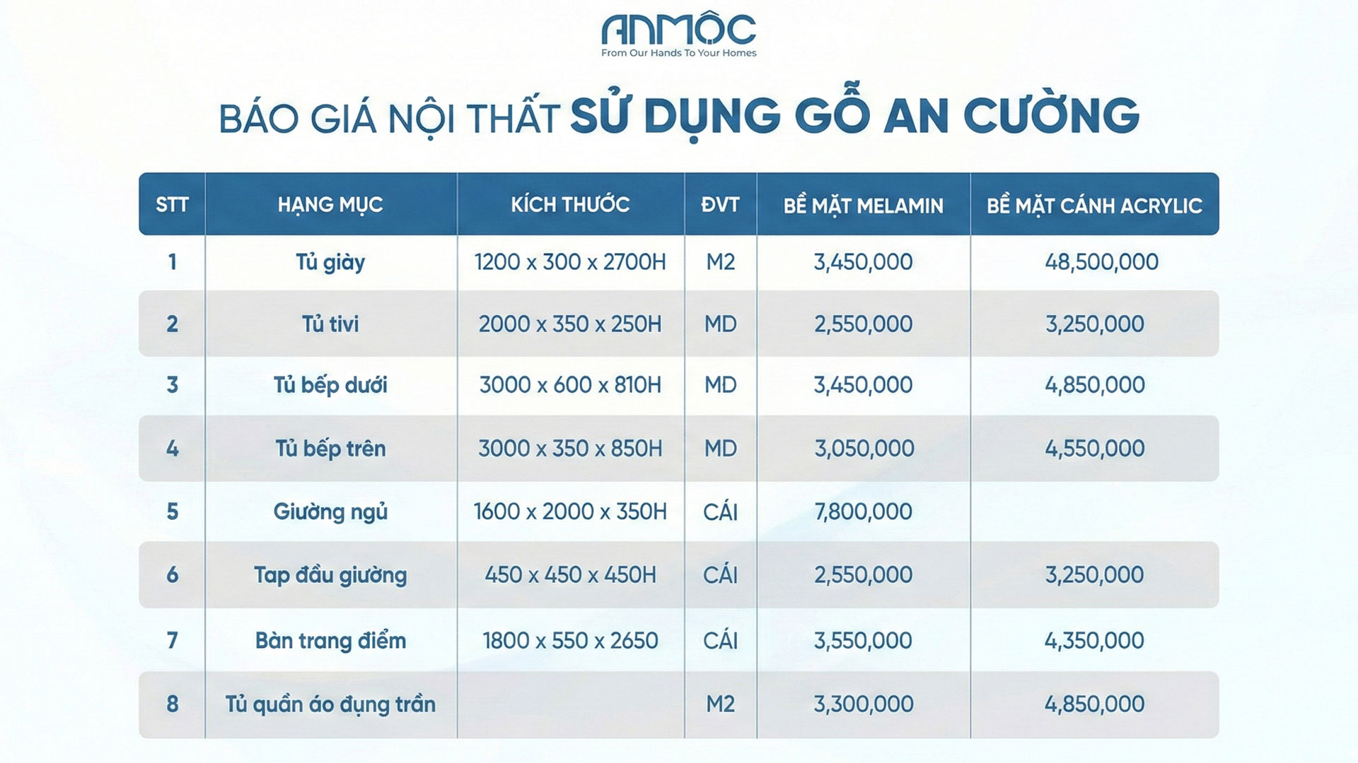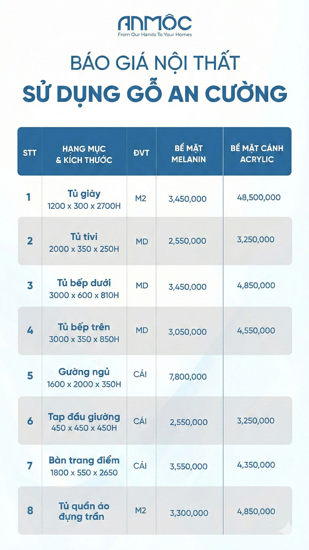 Bước 2: Báo giá thi công – Sau khi thống nhất vật liệu, An Mộc sẽ báo giá thi công chi tiết cho khách hàng.