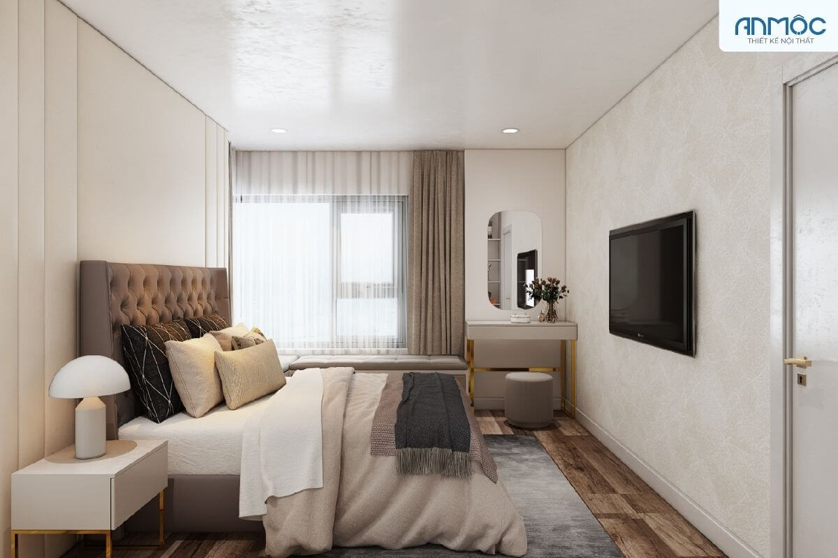 Đối với các cặp vợ chồng trẻ, căn hộ 1 phòng ngủ thường được thiết kế với phong cách hiện đại, tối giản, nhằm tối ưu không gian và tạo cảm giác thoải mái. Phòng ngủ có thể được bài trí với tông màu nhẹ nhàng như trắng, xám, hoặc pastel để tạo sự thư giãn.