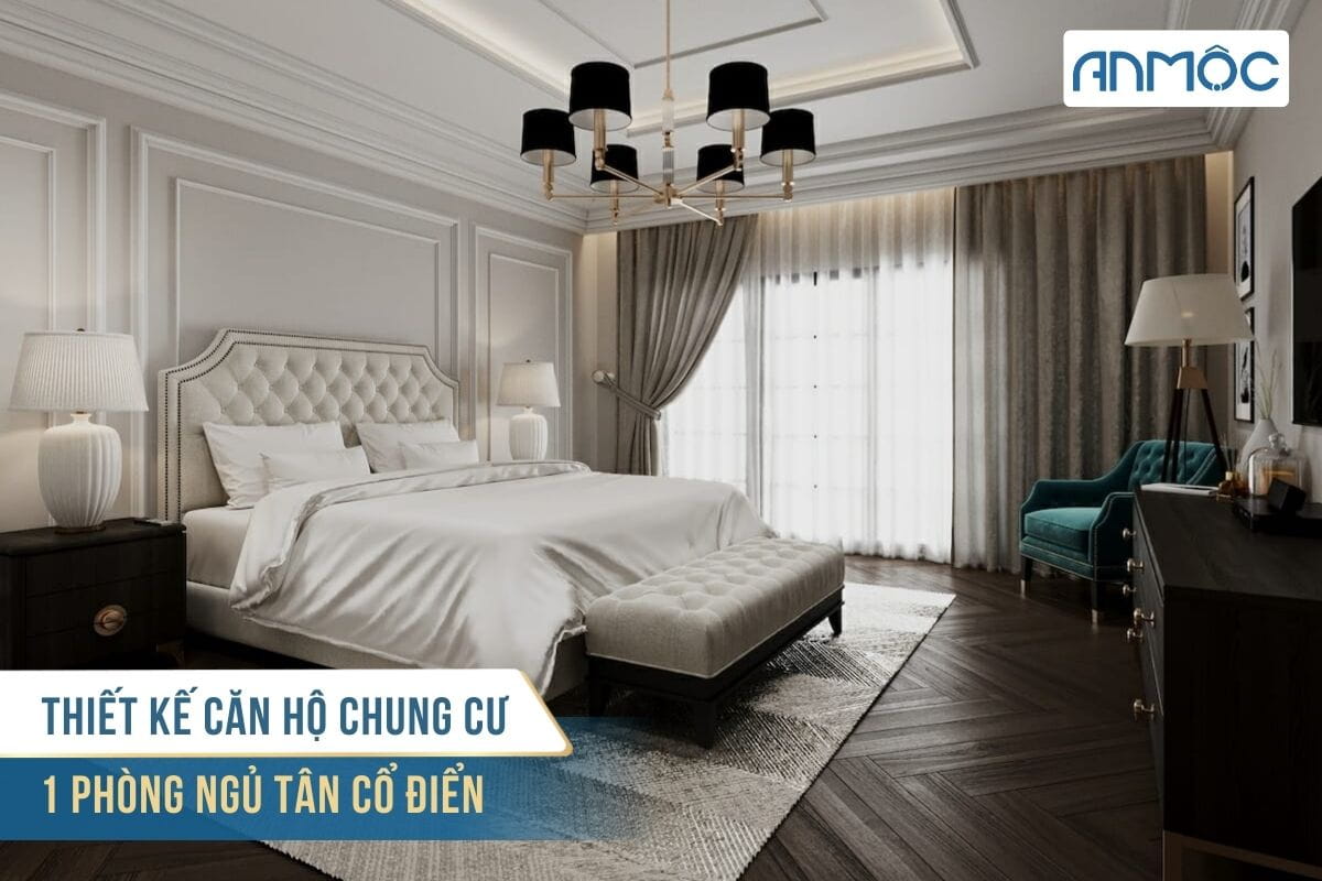 Thiết kế căn hộ chung cư 1 phòng ngủ tân cổ điển