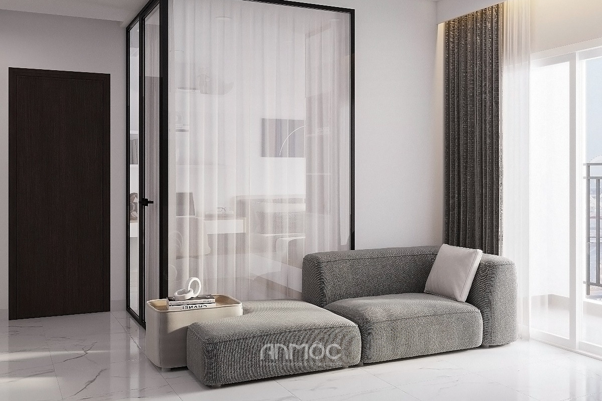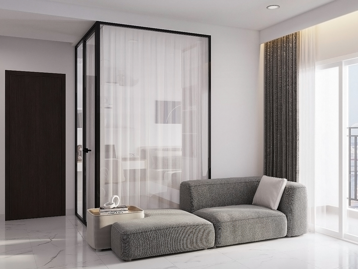 Phòng khách đóng vai trò là trung tâm của căn hộ, cần đảm bảo sự rộng rãi và tính thẩm mỹ. Để tối ưu không gian, nên chọn nội thất tối giản, hạn chế các món đồ cồng kềnh, ưu tiên sofa nhỏ gọn hoặc sofa chữ L. Tận dụng tối đa ánh sáng tự nhiên từ cửa sổ lớn kết hợp với rèm sáng màu giúp không gian trở nên thoáng đãng.