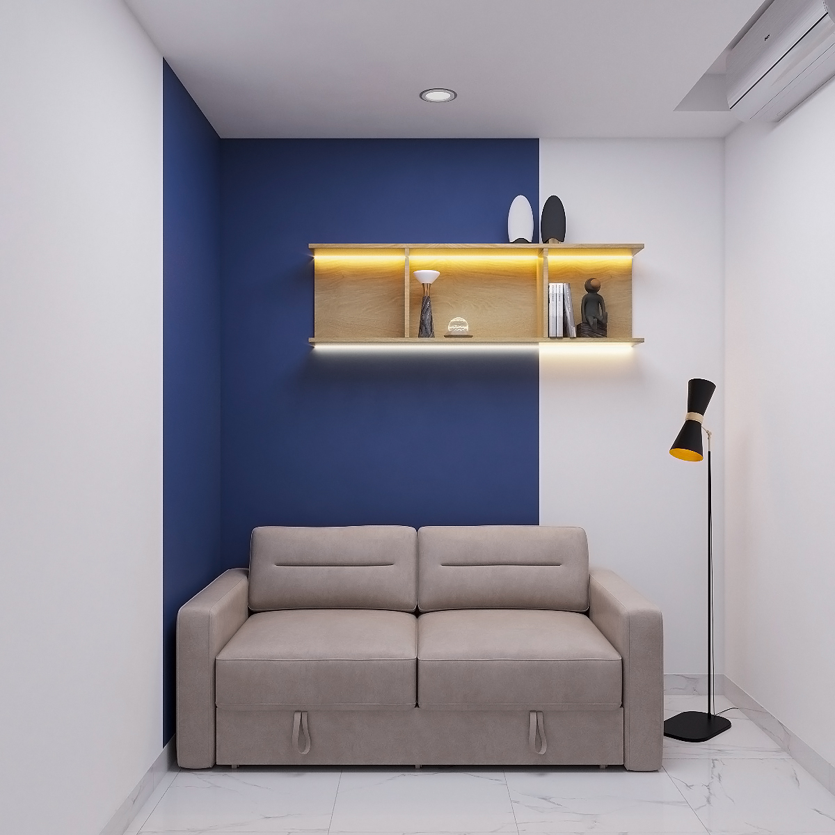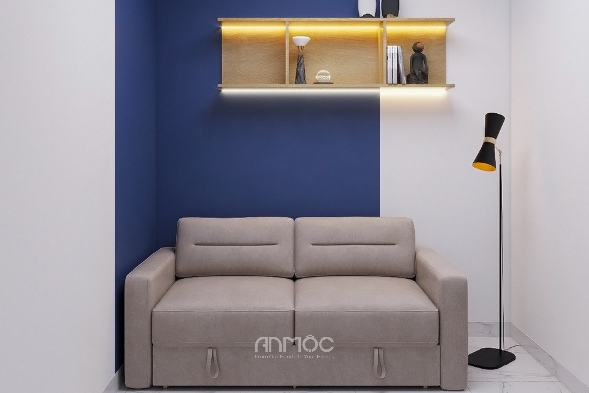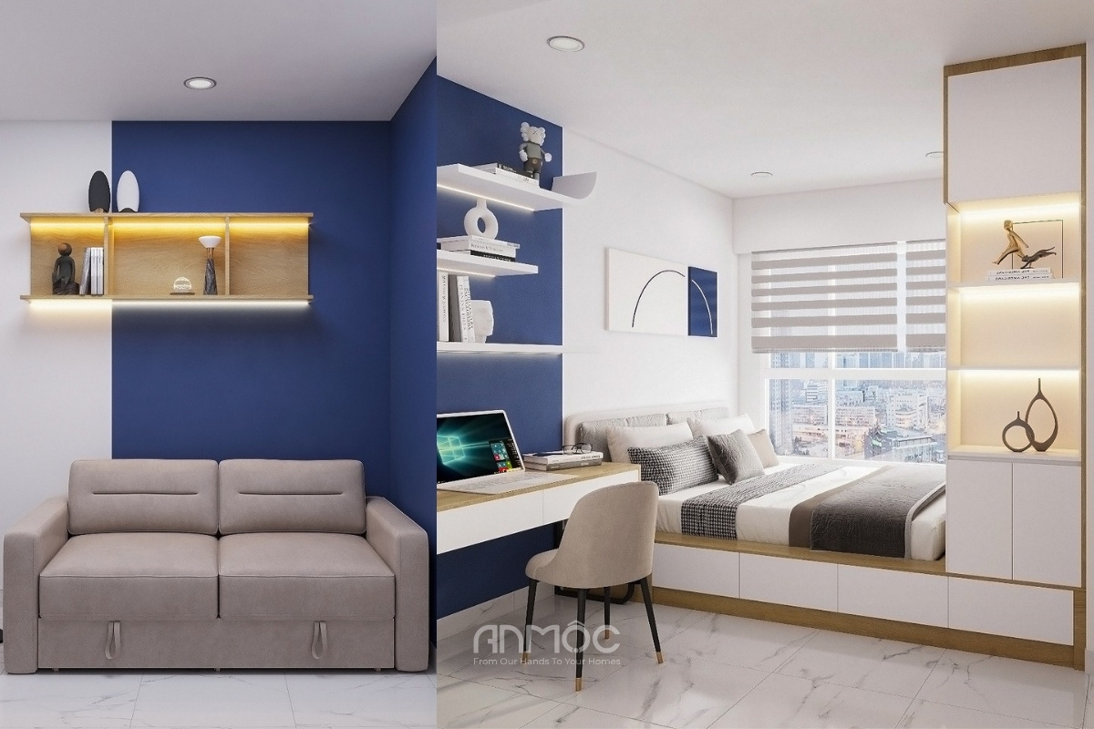 Ưu tiên nội thất nhỏ gọn, đa năng như giường gấp, sofa giường, bàn ăn gấp gọn và tủ âm tường để tiết kiệm diện tích. Bên cạnh đó, thiết kế không gian mở, chọn gam màu sáng và tận dụng ánh sáng tự nhiên để giúp căn hộ rộng rãi hơn.
