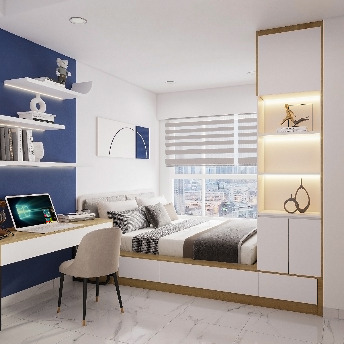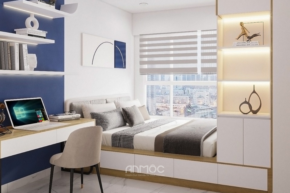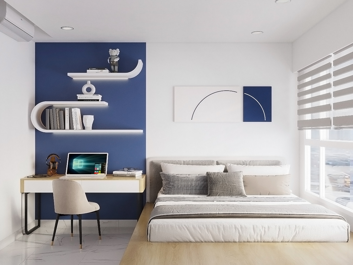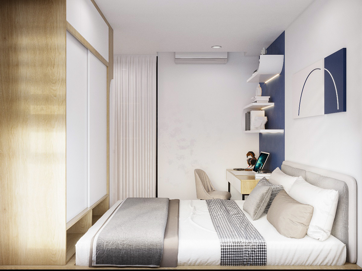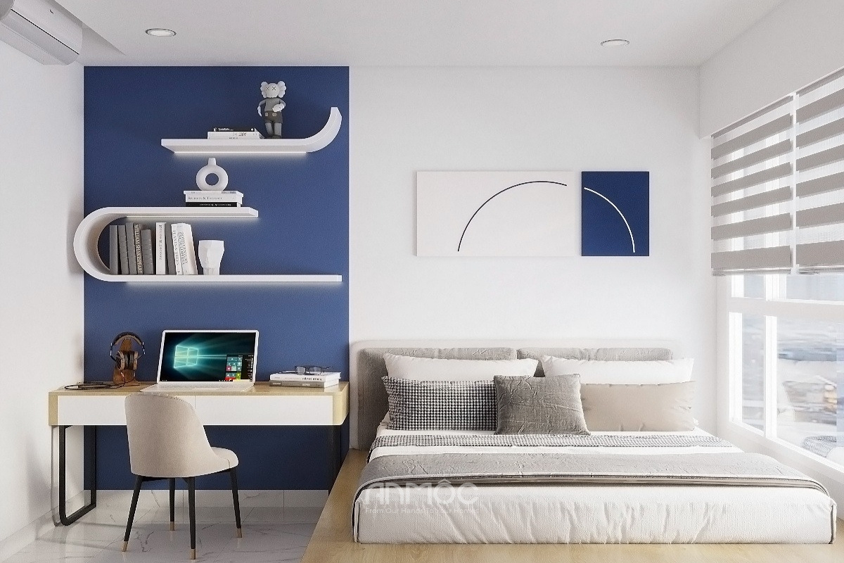 Trong đó, phòng ngủ master được thiết kế tỉ mỉ, kết hợp hài hòa giữa phong cách tổng thể và sở thích của gia chủ. Ngược lại, phòng ngủ nhỏ ưu tiên sự tối giản với đường nét gọn gàng, màu sắc nhẹ nhàng và nội thất tinh giản, giúp tối ưu không gian và tạo cảm giác thư thái khi sử dụng.