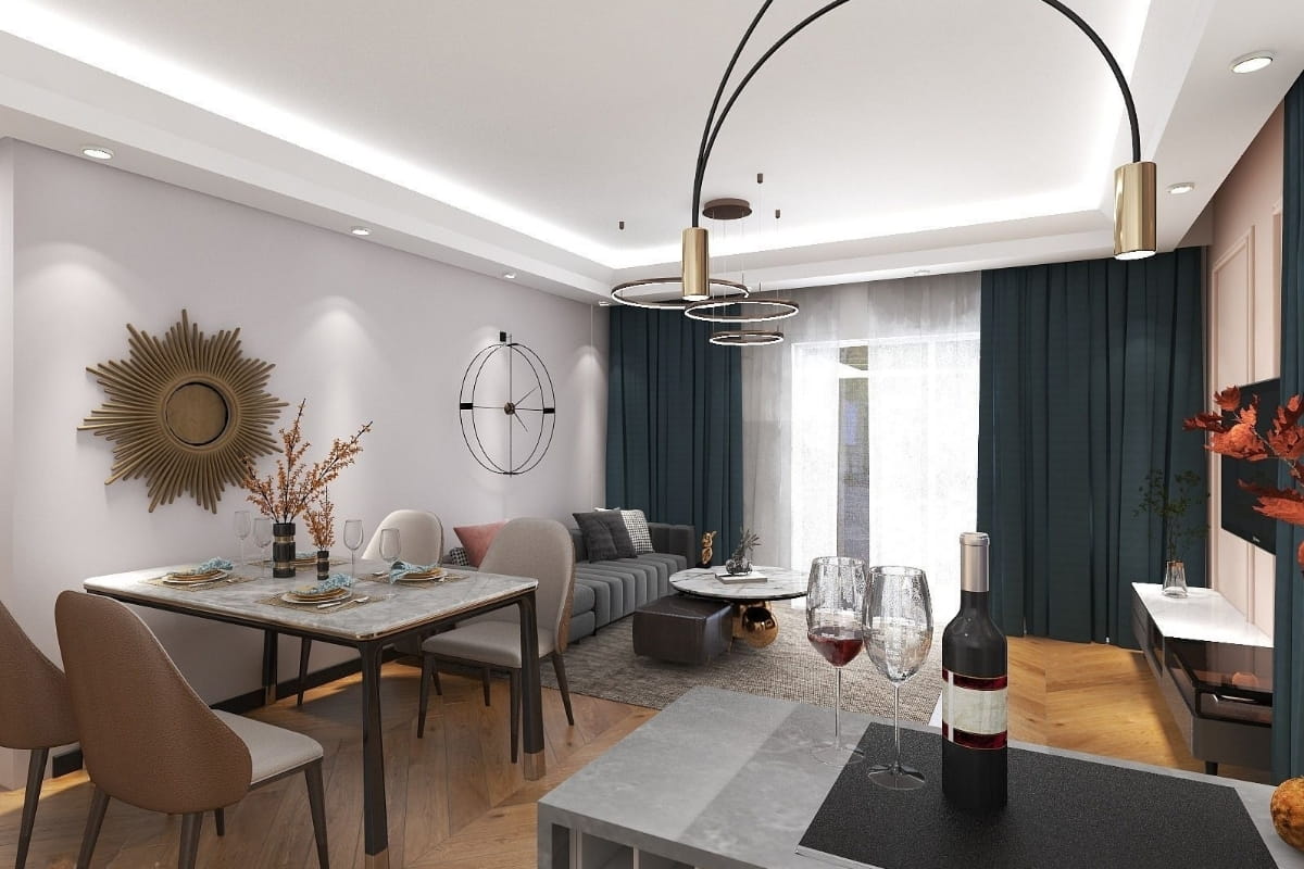 Thiết kế nội thất căn hộ 55m2 với 1 phòng ngủ là lựa chọn lý tưởng cho người độc thân hoặc cặp vợ chồng trẻ, hướng đến sự tối giản và tiện nghi. Thiết kế tập trung vào việc tối ưu không gian với nội thất đa năng, giúp căn hộ luôn rộng rãi và thông thoáng.