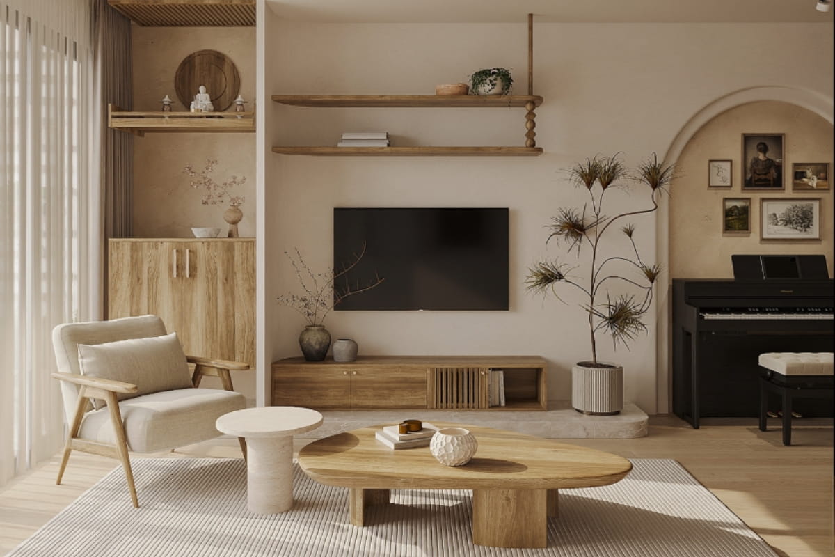Mẫu thiết kế nội thất chung cư 55m2 Wabi Sabi