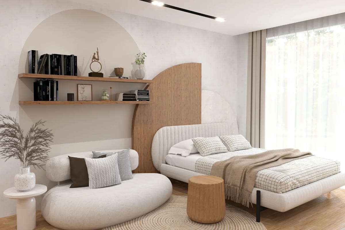 Đối với phòng ngủ, yếu tố cần đặt lên hàng đầu là sự riêng tư và tiện nghi. Giường tích hợp hộc kéo hoặc ngăn chứa đồ ngầm sẽ giúp tối đa hóa không gian lưu trữ. Bên cạnh đó, tủ quần áo âm tường là lựa chọn thông minh để giữ cho không gian luôn gọn gàng và tinh tế. Thay vì dùng quá nhiều vật trang trí, bạn nên tập trung vào chất liệu, màu sắc nhẹ nhàng và ánh sáng dịu để tạo cảm giác thư giãn.