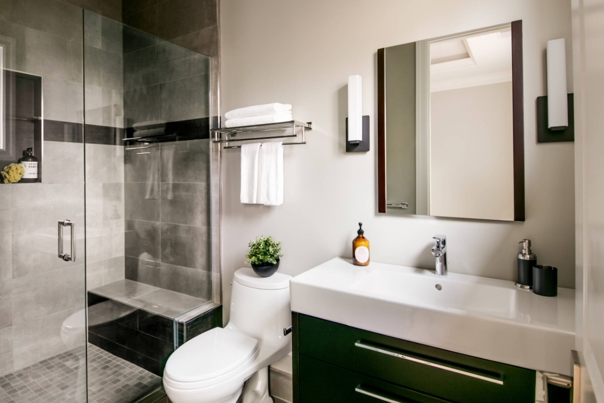 Song song đó, hãy chọn thiết bị vệ sinh nhỏ gọn và tận dụng kệ treo tường để gia tăng khả năng lưu trữ mà không chiếm quá nhiều diện tích sàn.