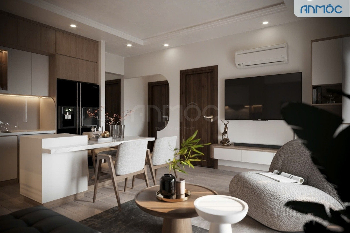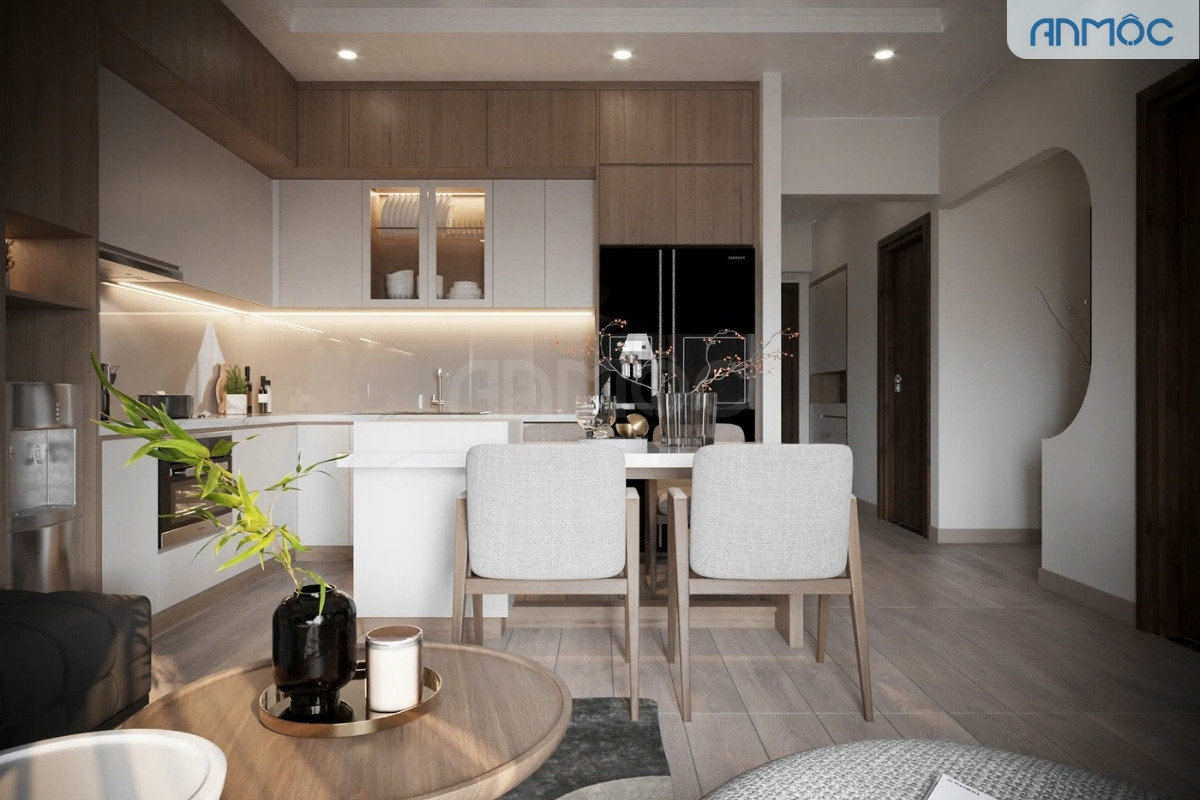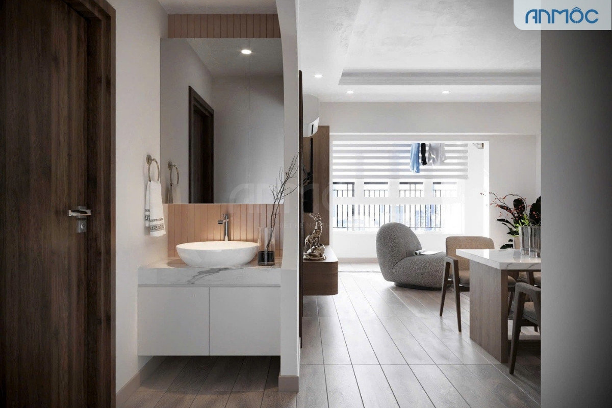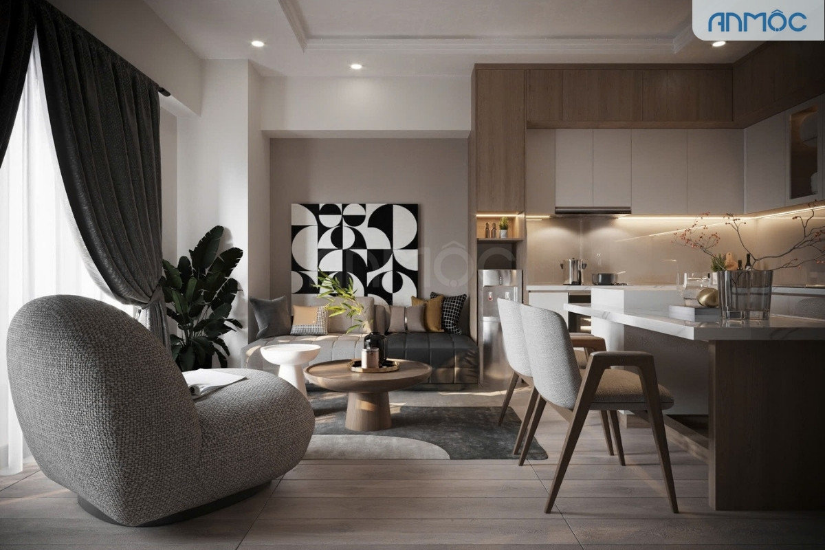 Trong quá trình này, An Mộc không chỉ tận dụng tối đa diện tích 80m2 mà còn chú trọng đến sự kết hợp giữa công năng sử dụng và thẩm mỹ. Đội ngũ kiến trúc sư của An Mộc, với sự sáng tạo và kinh nghiệm thực tế, đã đưa ra các giải pháp thiết kế phù hợp với phong cách sống hiện đại của gia chủ, đồng thời giải quyết những vấn đề như thiếu sáng và không gian lưu trữ trong căn hộ.