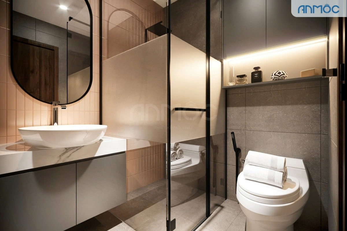 Căn hộ Cantavil An Phú có thiết kế nhà vệ sinh phân khu riêng biệt hợp lý và hiện đại, giúp mọi người trong gia đình sử dụng dễ dàng và thoải mái hơn. Khu vực bồn rửa mặt được thiết kế bên ngoài với các nội thất tinh gọn nhưng đẹp mắt với tông màu trắng và điểm nhấn màu cam đào mới lạ.
