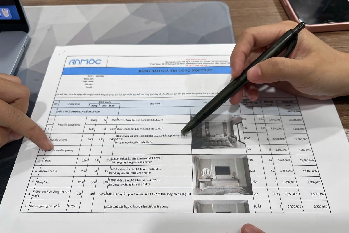 Bảng báo giá chi tiết, dễ hiểu: Mọi hạng mục đều được liệt kê rõ ràng, minh bạch về vật liệu, khối lượng và đơn giá. Cam kết không phát sinh chi phí bất ngờ trong quá trình thi công.