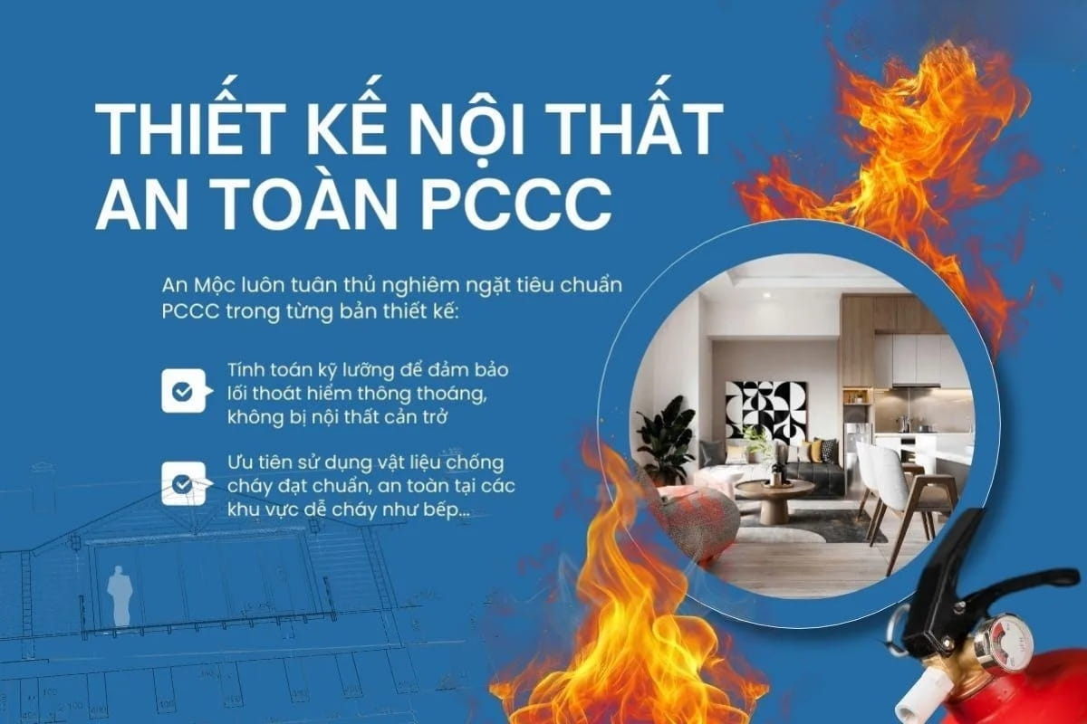 An toàn PCCC luôn là một trong những ưu tiên hàng đầu khi An Mộc thực hiện thiết kế – thi công nội thất cho mọi dự án. Chúng tôi đặc biệt chú trọng việc bố trí không gian sao cho khoa học, không che khuất thiết bị PCCC và tránh sử dụng vật liệu dễ cháy tại các khu vực nhạy cảm…. Bởi lẽ, đây là những lỗi mà nhiều đơn vị thiếu kinh nghiệm thường mắc phải, tiềm ẩn rủi ro nghiêm trọng cho người sử dụng.