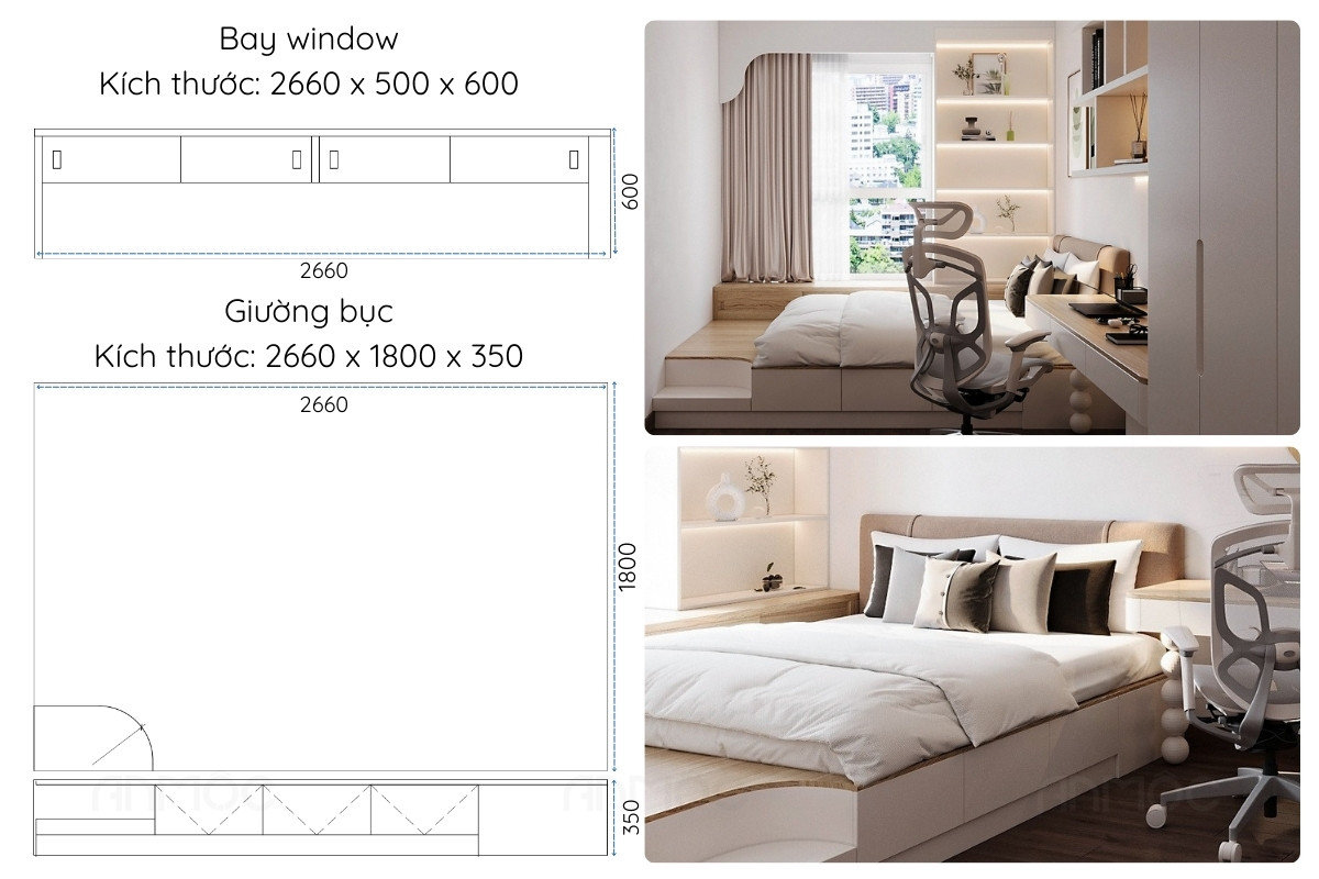 Phòng ngủ căn hộ Sunrise Cityview được thiết kế linh hoạt, đáp ứng đồng thời nhu cầu nghỉ ngơi và làm việc tại nhà. Xu hướng thiết kế hiện đại chú trọng cân bằng giữa thẩm mỹ và công năng, giúp tối ưu hiệu quả sử dụng trên từng mét vuông diện tích. Gam màu be kết hợp sắc nâu gỗ cùng hệ tủ âm tường, giường bục và ánh sáng gián tiếp mang đến cảm giác ấm áp, thư thái cho không gian riêng tư của gia chủ.