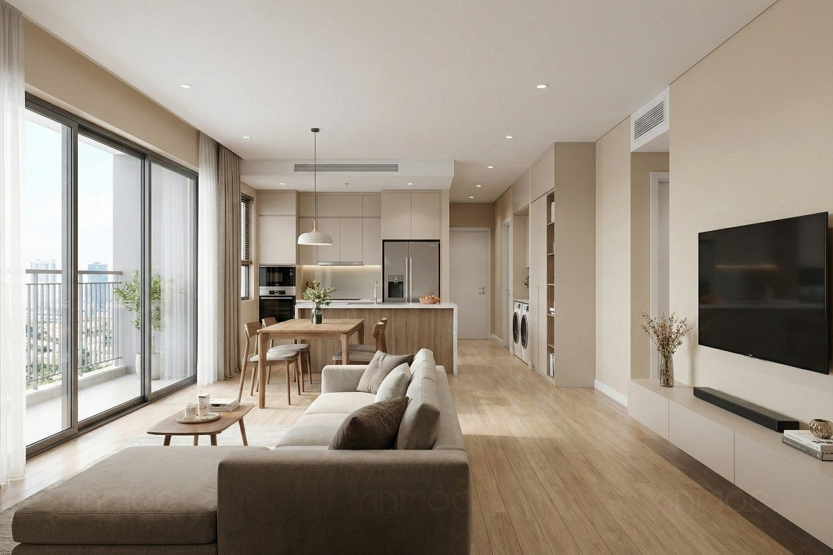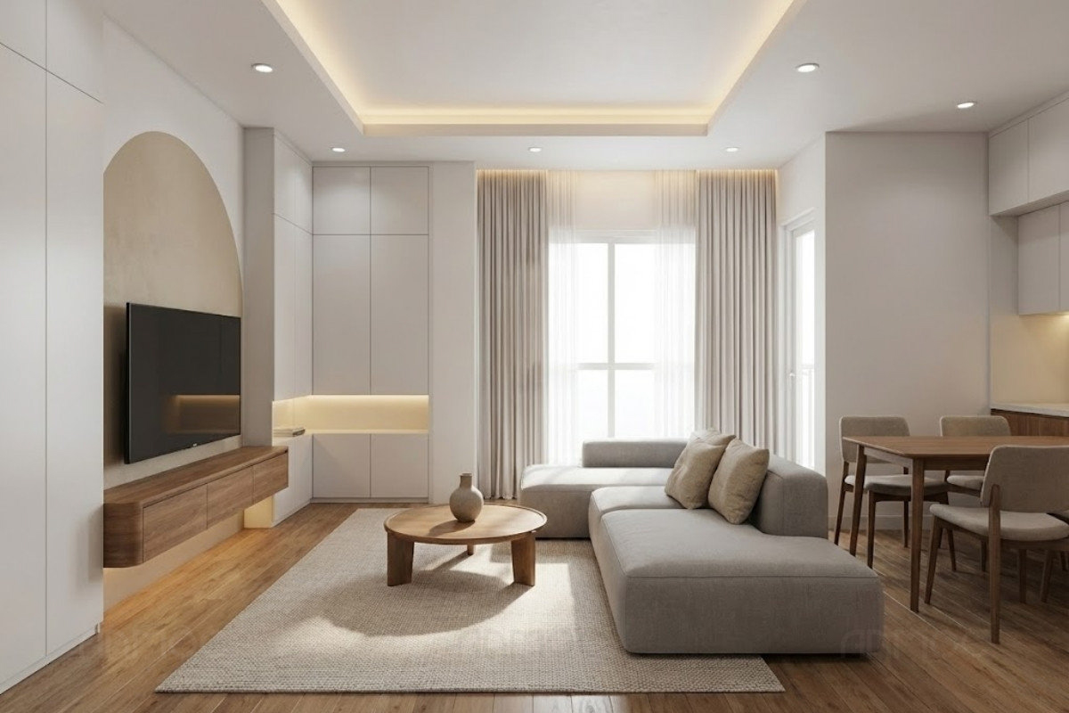 Căn hộ trên 75m2 có lợi thế về không gian rộng rãi và nhiều khu vực riêng, mang lại sự thoải mái trong sinh hoạt hằng ngày. Vì vậy, giải pháp thiết kế cần tập trung khai thác hiệu quả diện tích, kết hợp nội thất tạo điểm nhấn và vật liệu chọn lọc để tăng tính cá nhân hóa cho từng không gian.