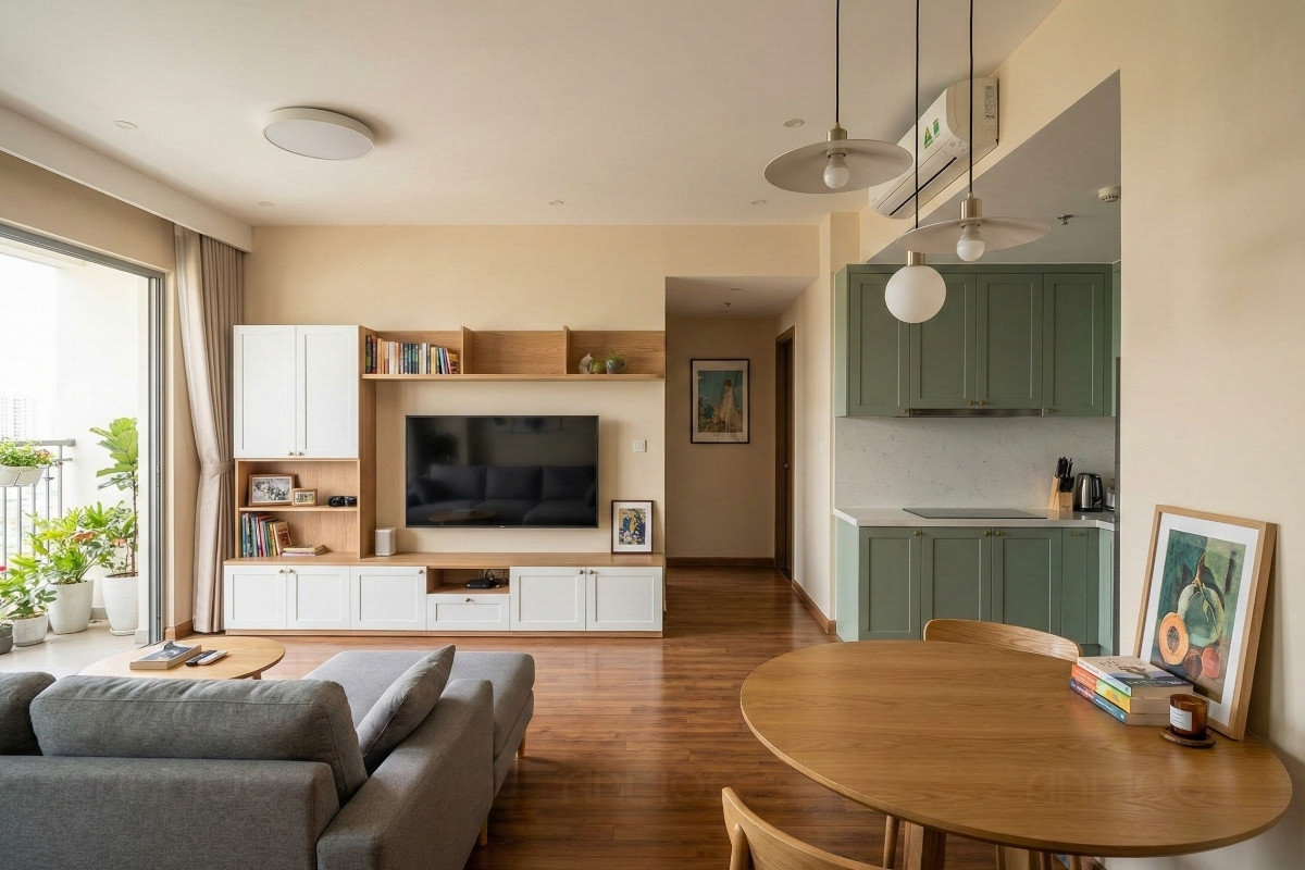 Đối với vợ chồng trẻ, thiết kế nội thất chung cư Sunrise Riverside cần hướng đến không gian sinh hoạt chung tiện nghi và linh hoạt. Vì vậy, bố cục thường được sắp xếp mở, dễ điều chỉnh theo thời gian, kết hợp phong cách hiện đại, tối giản để tạo cảm giác gọn gàng, ấm cúng và tối ưu chi phí.