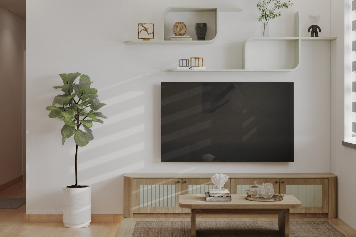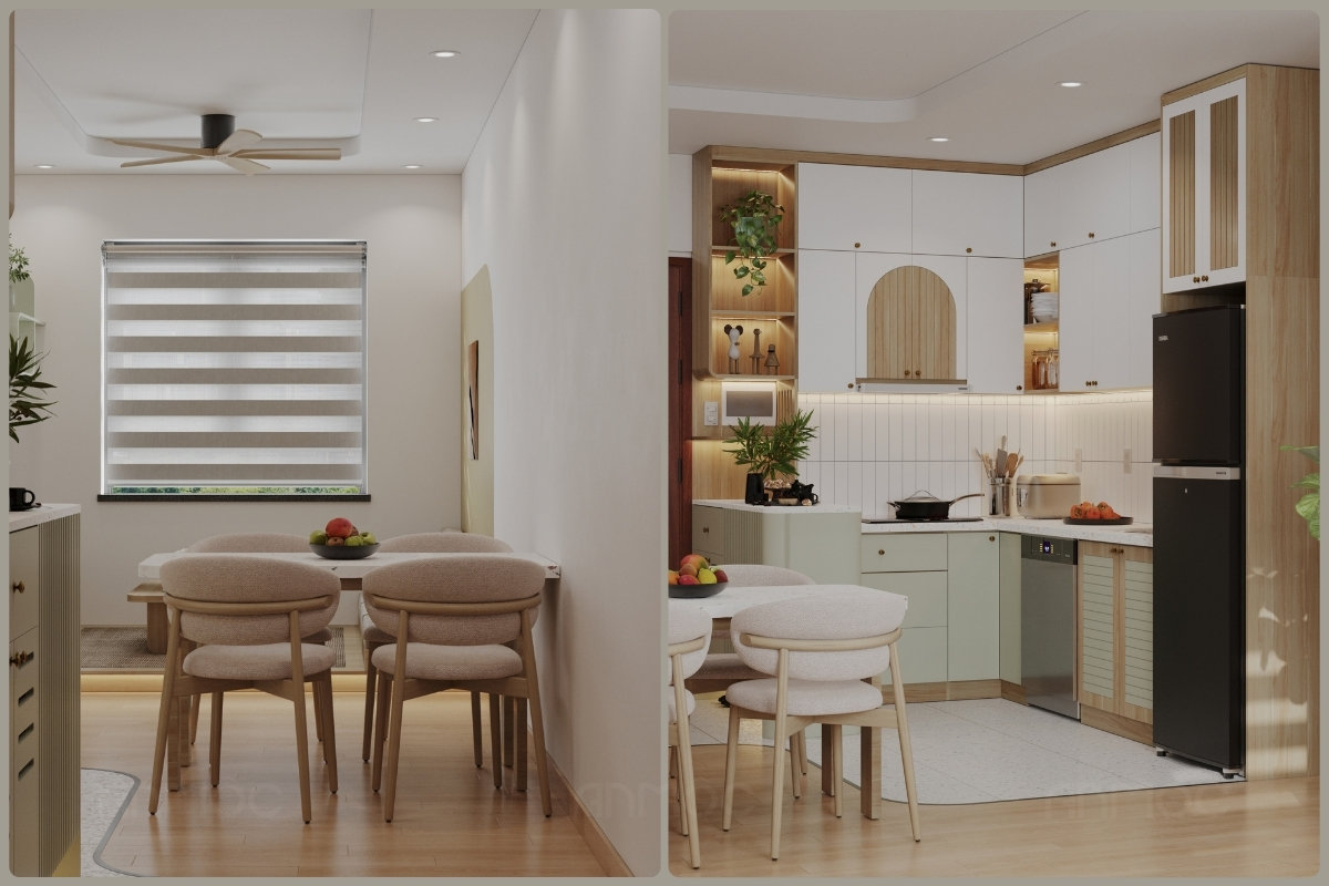 Từ đó, bảng màu trung tính ấm được lựa chọn làm chủ đạo, mang lại cảm giác nhẹ nhàng, dễ chịu, đồng thời cách xử lý ánh sáng hợp lý giúp không gian luôn thoáng sáng và cân bằng. Tổng thể hướng đến một không gian sống tiện nghi, tinh giản nhưng vẫn đủ điểm nhấn, phù hợp với nhu cầu sinh hoạt thực tế của gia chủ.