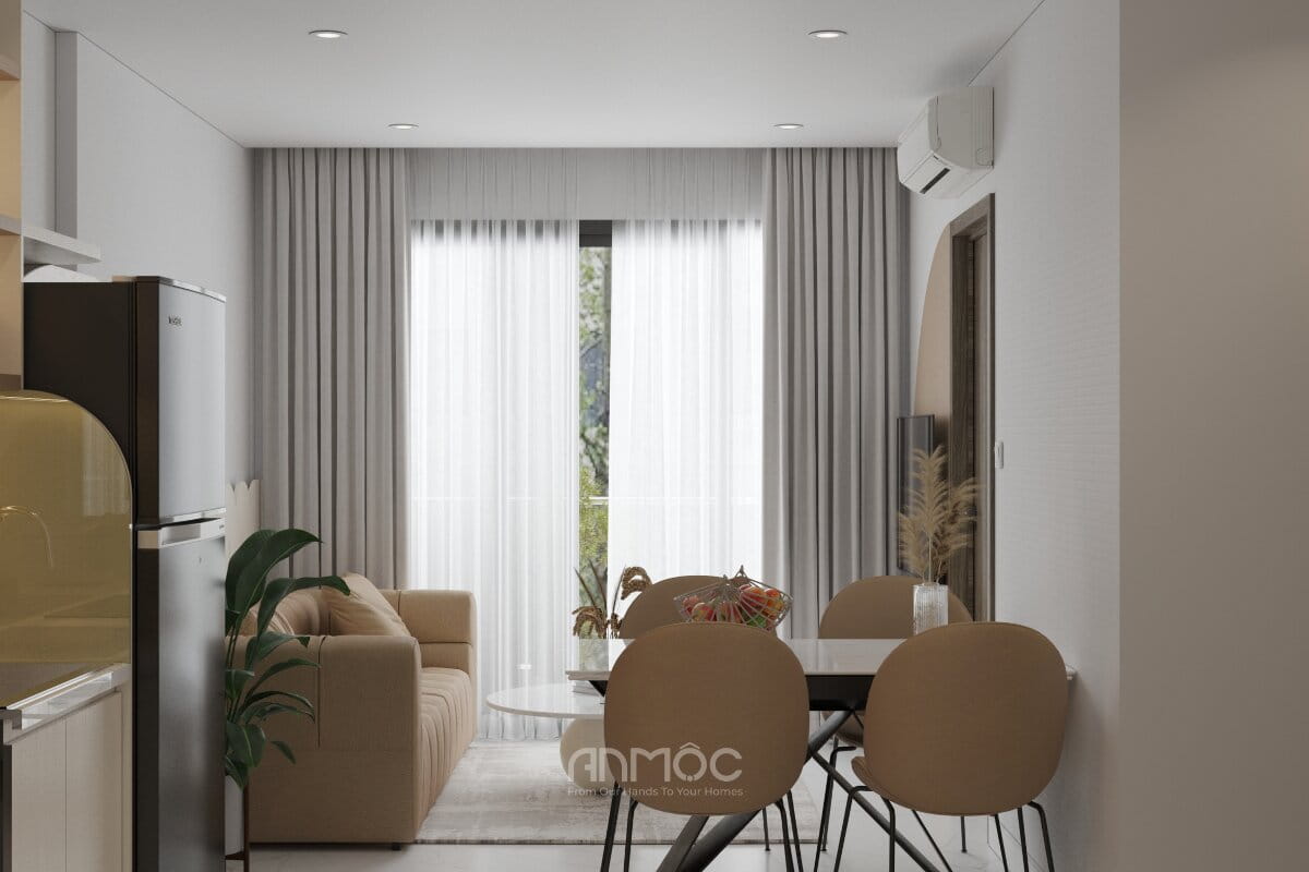 - Nội thất cơ bản & dễ phối: Lựa chọn phong cách hiện đại, trung tính, gọn gàng, tạo sự thoải mái và dễ dàng cho khách thuê phối thêm đồ cá nhân.