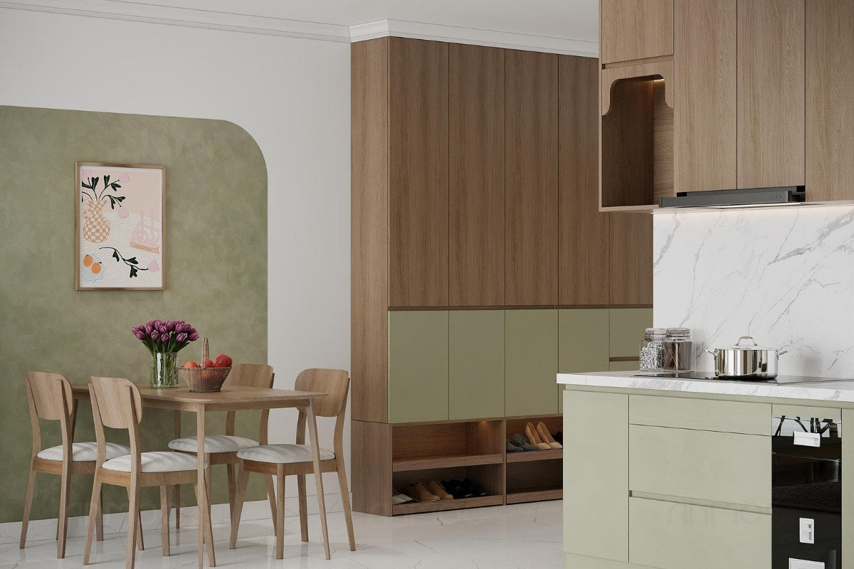- Thay đổi layout thông minh: Đôi khi chỉ cần điều chỉnh bố cục, như di chuyển bếp để mở rộng khu sinh hoạt chung, hay kết hợp phòng làm việc với phòng ngủ phụ, căn hộ sẽ trở nên linh hoạt, thoáng đãng và tối ưu công năng hơn.