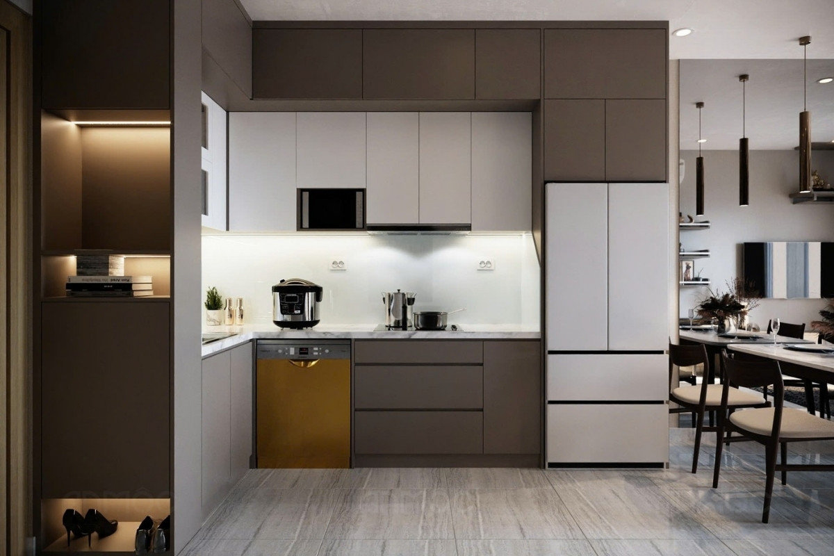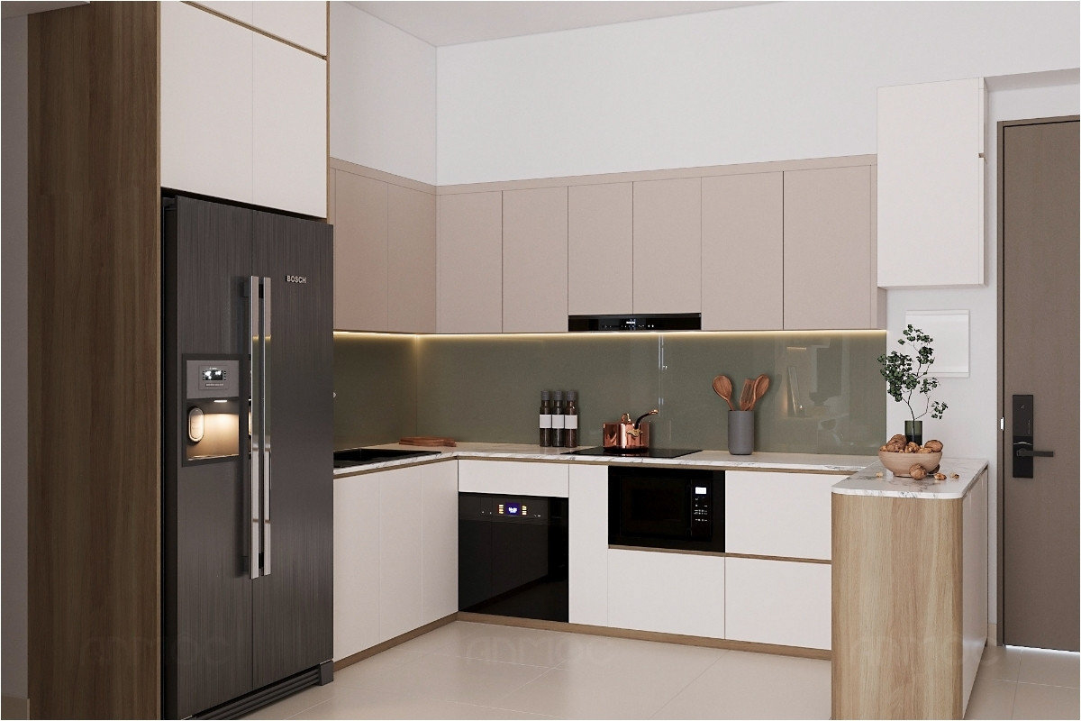Mẫu 2: Thiết kế không gian phòng bếp đẹp hiện đại cho nhà chung cư