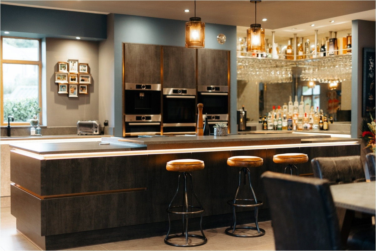Mẫu 12: Nhà bếp hiện đại kết hợp tủ vang sang trọng