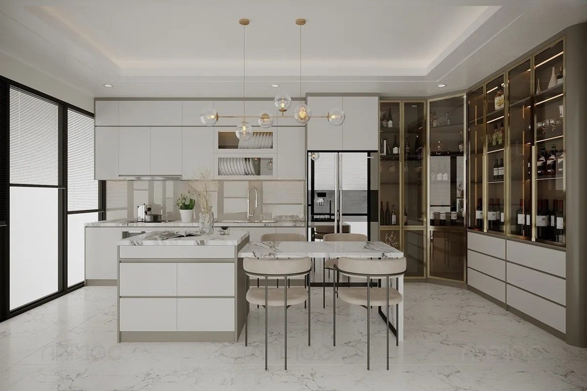 Mẫu nội thất phòng bếp kết hợp quầy bar hiện đại, tinh tế