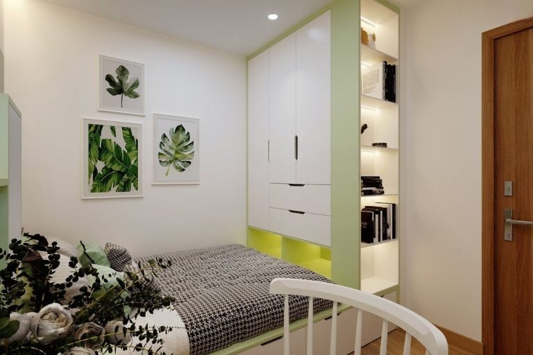 Ngoài ra loại giường ngủ thường sử dụng cho các căn phòng này thường là giường đơn với kích thước tiêu chuẩn từ 1,2m. Tích hợp thiết kế bục có không gian lưu trữ hoặc gấp gọn như giường Murphy…