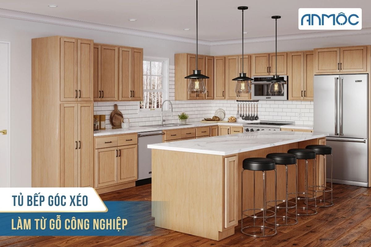 Tủ bếp góc xéo làm từ gỗ công nghiệp