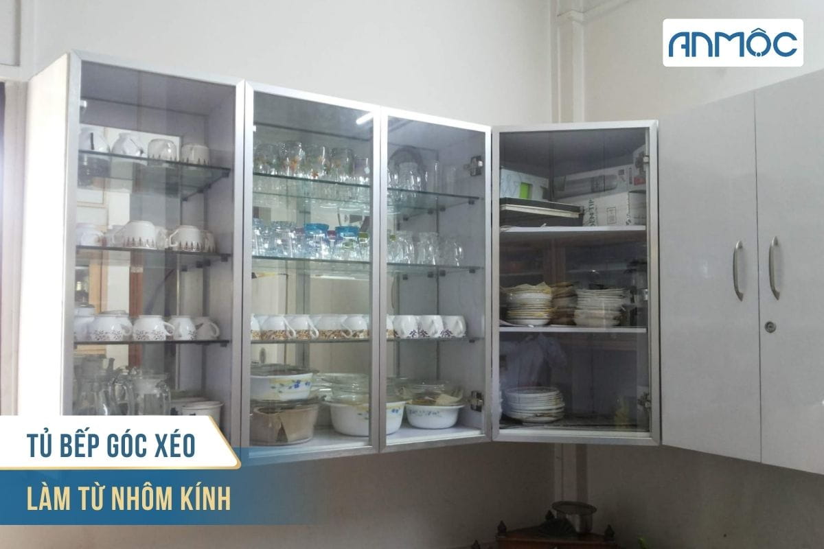 Xuất hiện rất nhiều trong các không gian thiết kế hiện đại, không thể không kể tới mẫu tủ bếp nhôm kính. Với sự kết hợp hài hòa giữa chất liệu nhôm bền bỉ cùng với kính trong suốt, chiếc tủ xéo mang đến vẻ đẹp hiện đại, thoáng đãng đồng thời đảm bảo độ bền đẹp theo thời gian và giúp gia chủ dễ dàng vệ sinh.