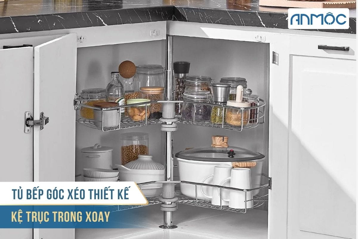 Tủ bếp góc xéo thiết kế kệ trục trong xoay